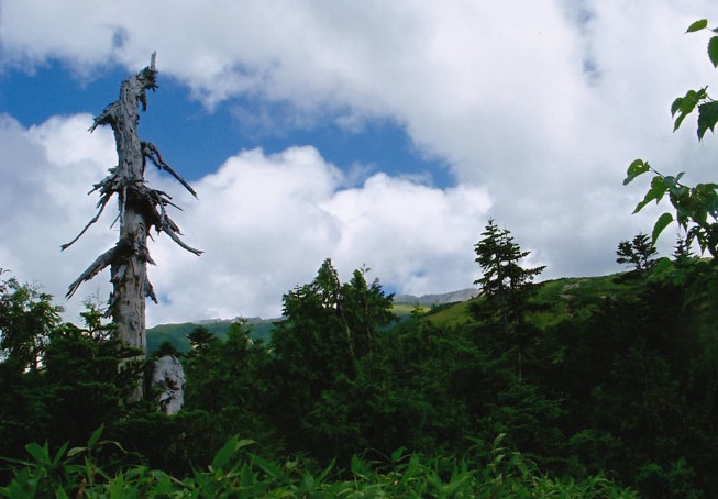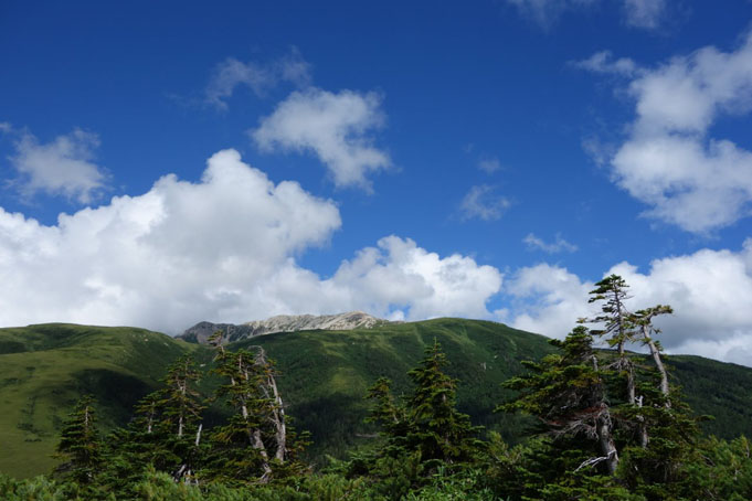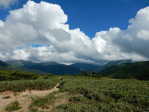 【35】標高2,000mあたりで空が大きくなった。青い空に白い雲。雲の動きに注意は怠らないけれど、夏山という感じのいい時間が流れていく。