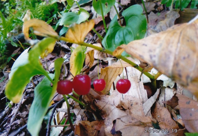 【15】オオバタケシマラン。葉裏に下がって隠れているけど、赤くて丸くて目立ちたい。複雑な心境の完熟四姉妹。