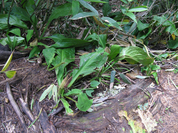 これはじつはタケシマラン。オオバタケシマランは5日目の【21】にありますが、一番わかりやすい違いは実(花)をつける花柄の途中に関節があるかないかで、90度ひねれているように見えるのがオオバタケシマランで、ストレートならタケシマラン、なのです。そのほかはほとんど区別できない感じですから、見た印象に間違いはないのですが。