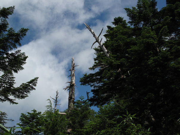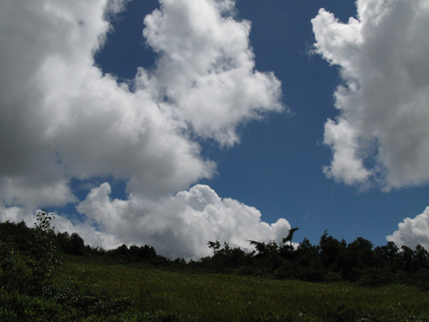 一帯は深い樹林に囲まれている。見上げると青い空に白い雲。夏の空という感じがする。これから4日間、天気さえよければ高原散歩、悪天候なら容赦なく叩かれる。どちらに転ぶかは神のみぞ知る……という気分。