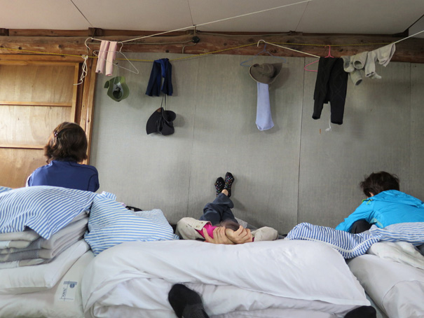 【26】夕食前のひととき。太郎平小屋は前回泊まったとき、夜中にトイレに行く際に階段から落ちてひどく脛を打ち、一週間以上痛みが取れなかった。そのため印象がよくなかったのだが、写真でも分かる通り、今回はのんびりゆったり、快適だった。
