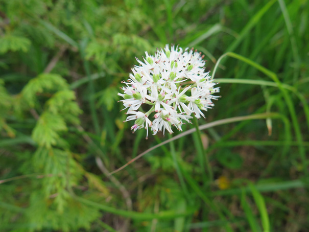 【34】この日、唯一華々しい存在だったのはイワショウブ。白い花びらが6枚あり、それと対をなすように6本の雄しべ。白い花のかたまりが直線的な細い茎の先端についている風情は広い草原の中にあってもよく目立つ。チシマゼキショウ(千島石菖)の仲間ということで、別名はムシトリゼキショウとか。ここに見えるムシの運命やいかに。