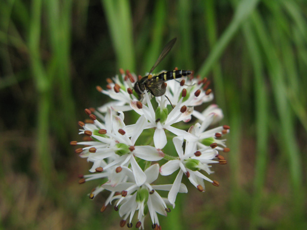 この日、唯一華々しい存在だったのはイワショウブ。白い花びらが6枚あり、それと対をなすように6本の雄しべ。白い花のかたまりが直線的な細い茎の先端についている風情は広い草原の中にあってもよく目立つ。チシマゼキショウ(千島石菖)の仲間ということで、別名はムシトリゼキショウとか。ここに見えるムシの運命やいかに。