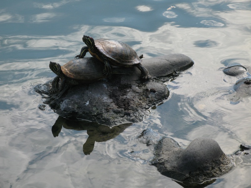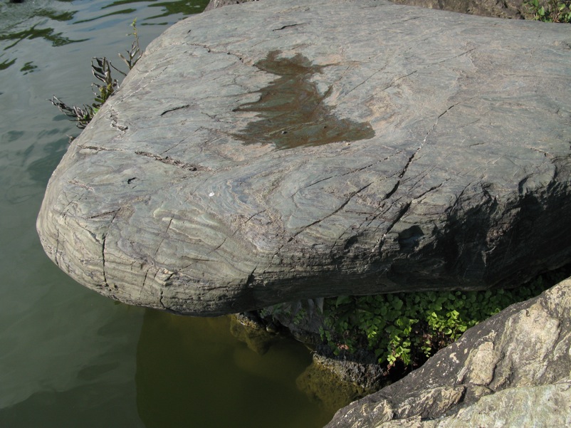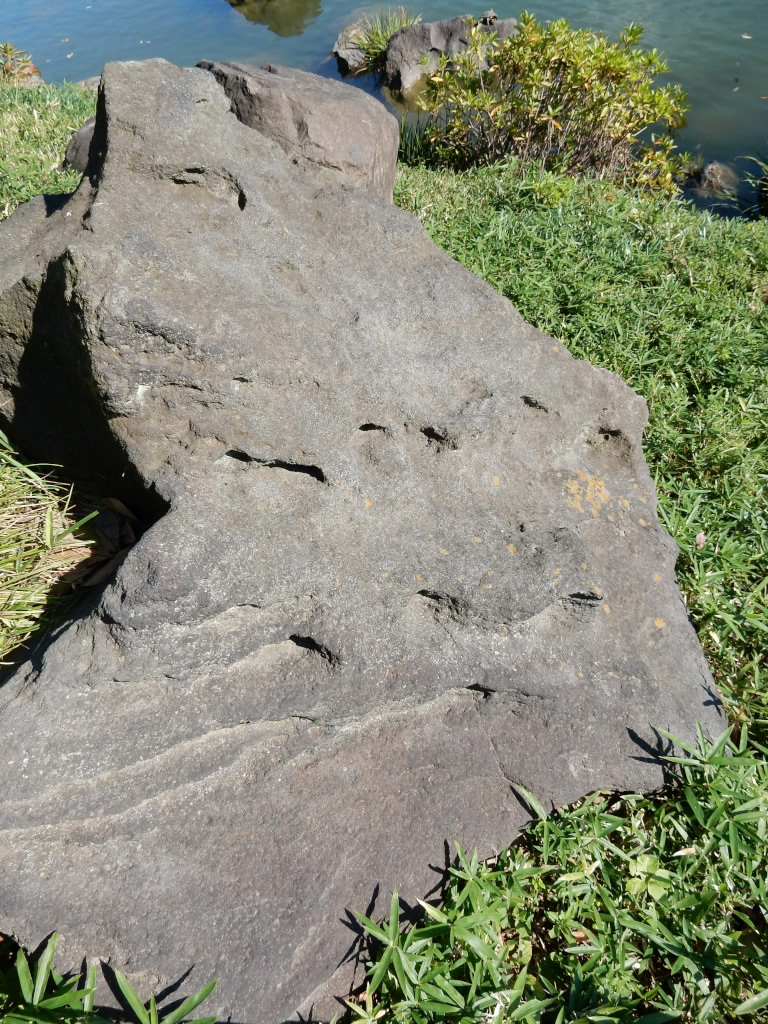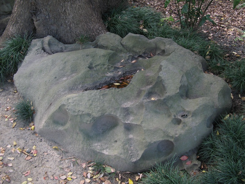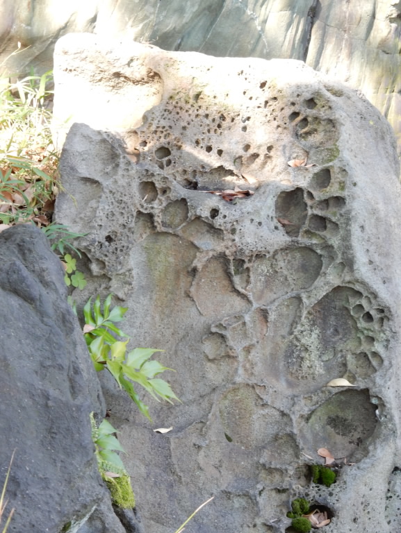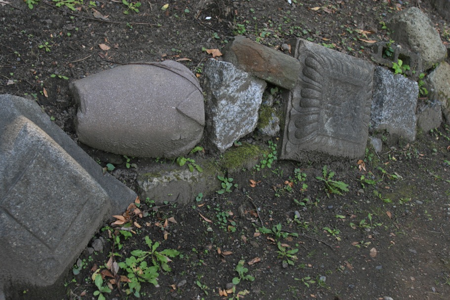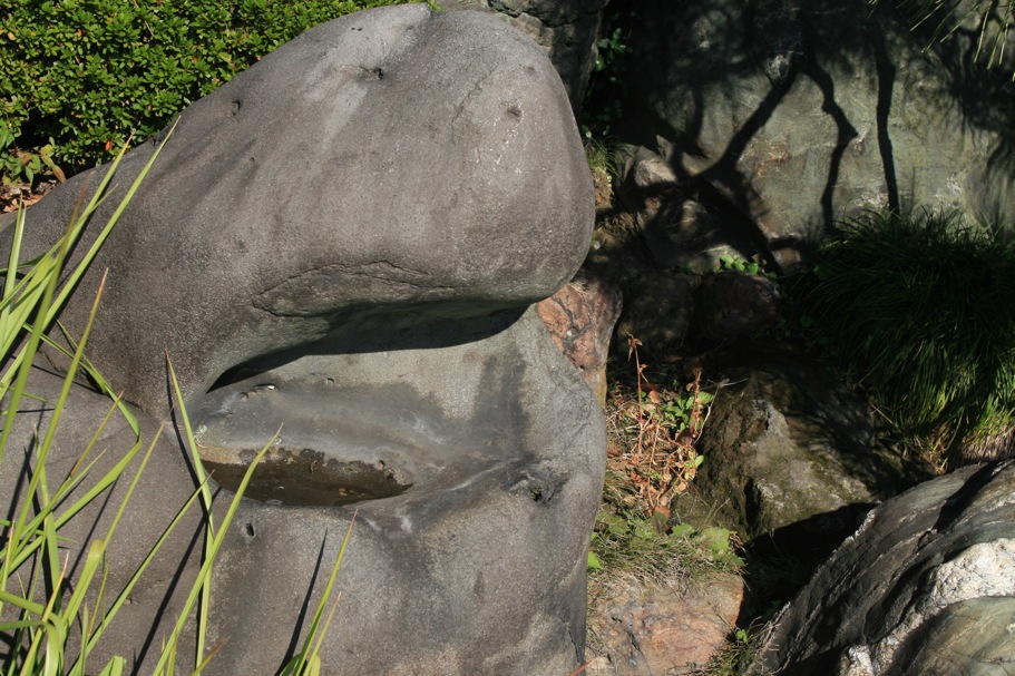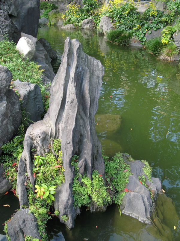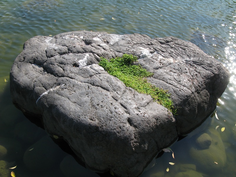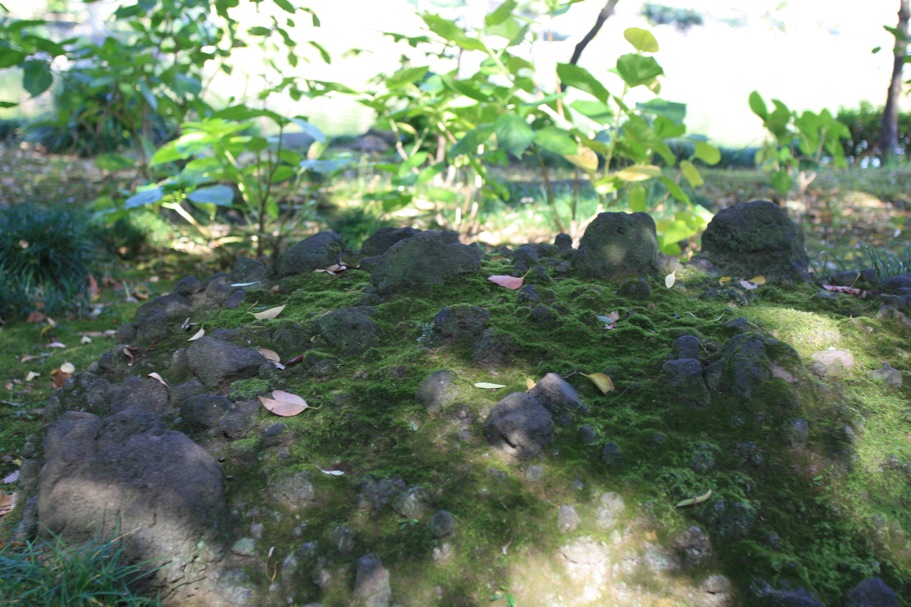 【06】この清澄庭園では、いろいろな所に、実にいろいろな石が使われている。その中でも特に気に入ったのが、この石囲い。灯篭の一部や、柱の一部が使われているみたい。それがなんとも言えずユニークで、なんといってもお洒落!装飾品としての命がまた吹き込まれ、人の目を楽しませ続けるこの石たち。私の目には、幸せそうに映りました。