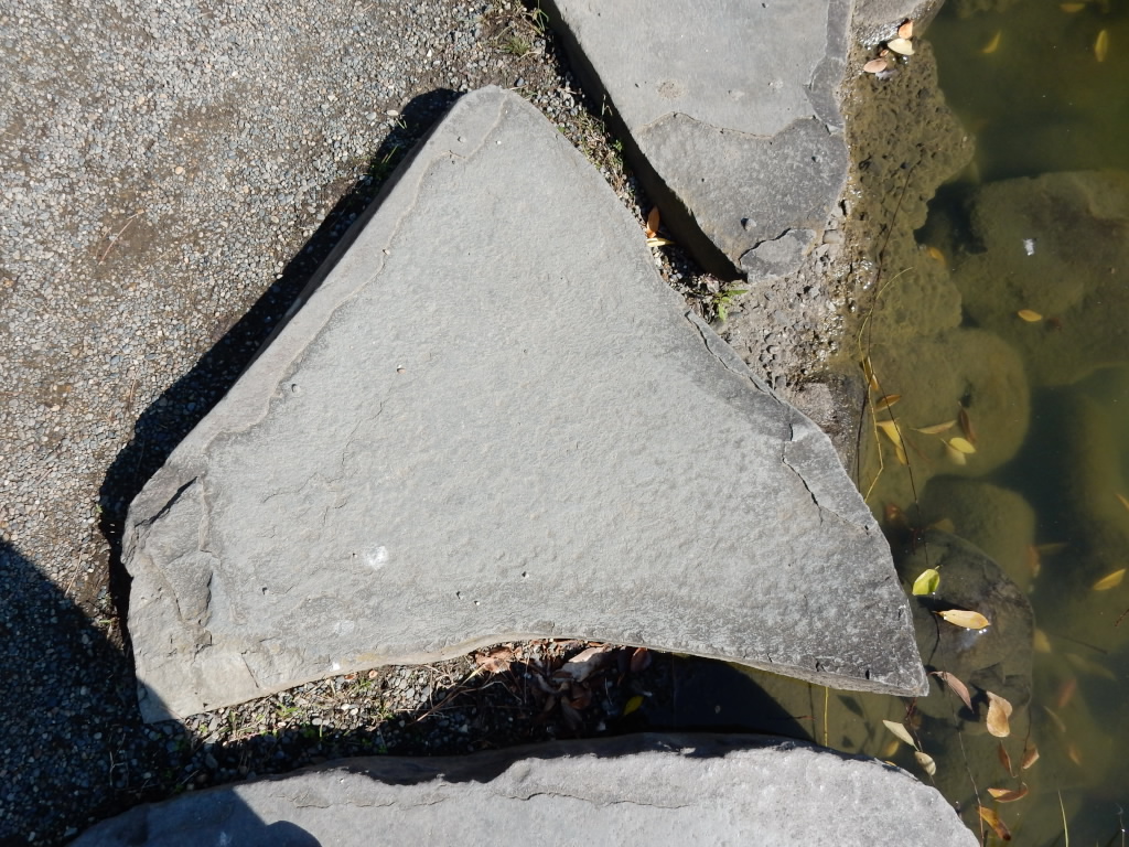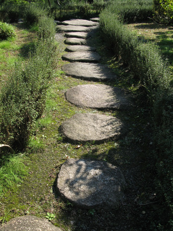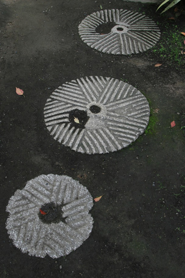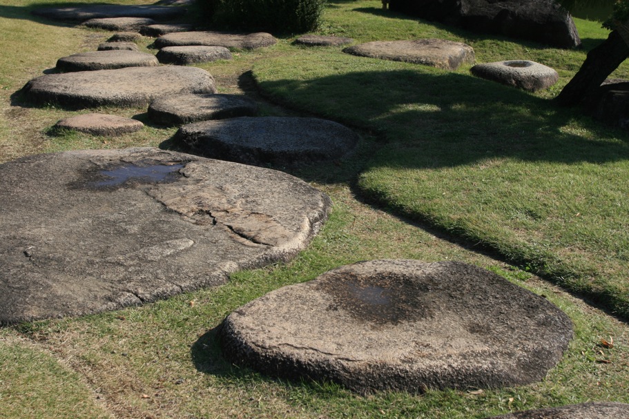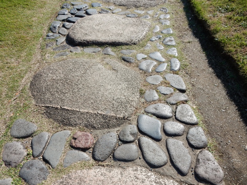 【13】つるんとした石畳の中に、突如として現れた車輪のような石。ここを作った人は、最高に楽しみながら作っていたんだろうなぁと思う。うっかりしていると見落としてしまいそうなところに楽しさが感じられる。見る側にこういう発見をさせ、発見に対して想像を掻き立たせる。ちょっと意地悪で、サービス精神あふれる石の庭園。