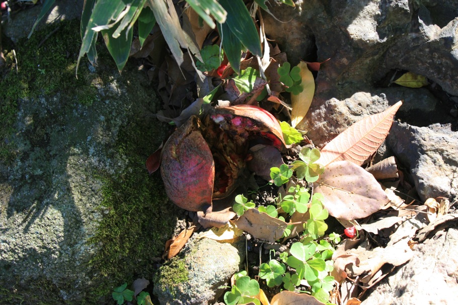 【27】今、落ちたばかりなのかしら、ぎんなんが一つぽつんと砂利の上に。