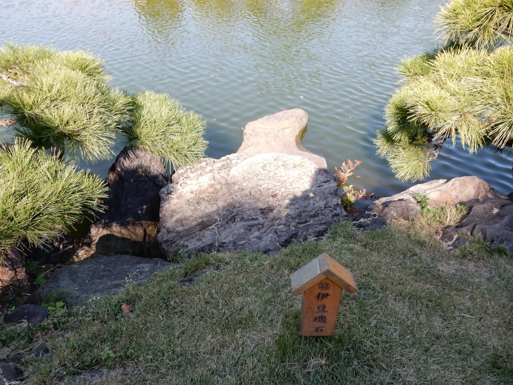 三菱財閥の資金と、日本郵船のネットワークによって全国から庭石を集めたということで、ここは明治時代の庭園を代表する庭園とのこと。名石をごろごろと惜しげもなく転がしてあるので、庭石美術館的庭園という感じがしました。