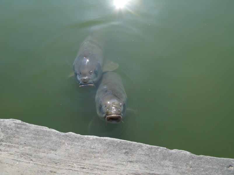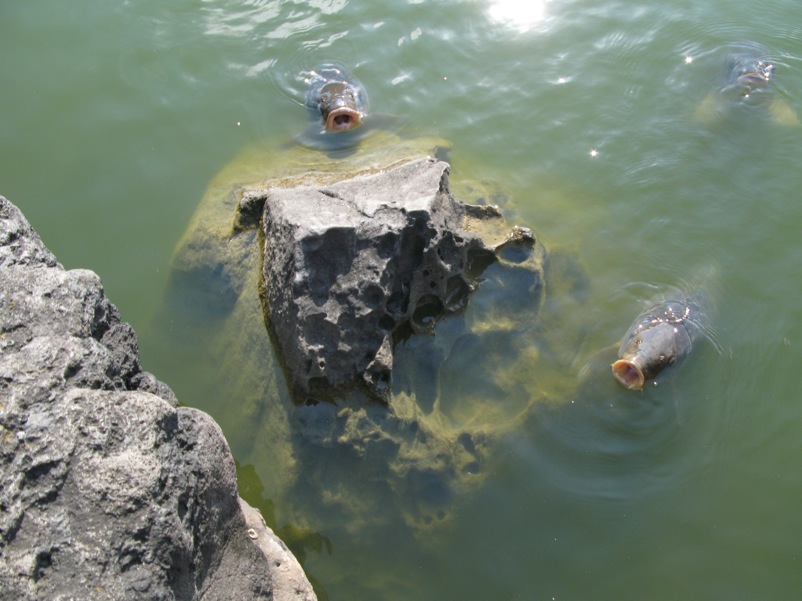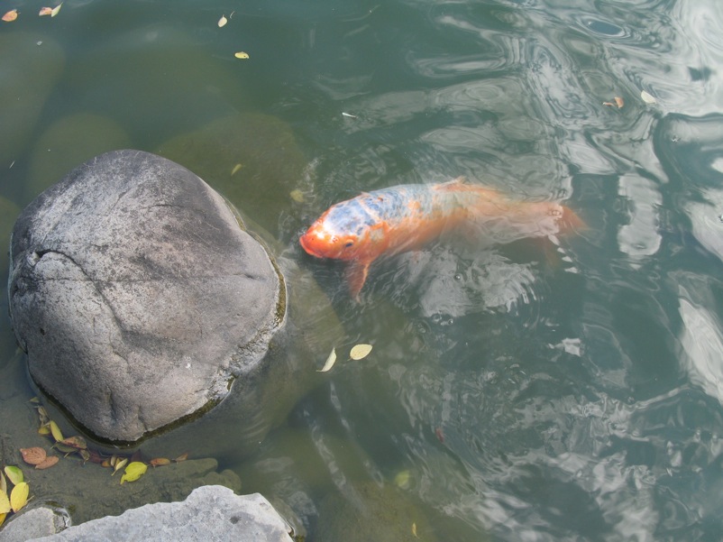 【32】池のお魚にもすぐ飽きたようですね。先生あっちへ行きたいとでも言ってるのかしら。