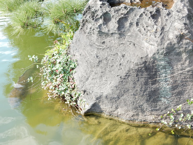 【69】今にも泳ぎ出しそうな石。石の目線で松をみたつもりなのですが。撮影者の目線が石の目線になれませんでした。
