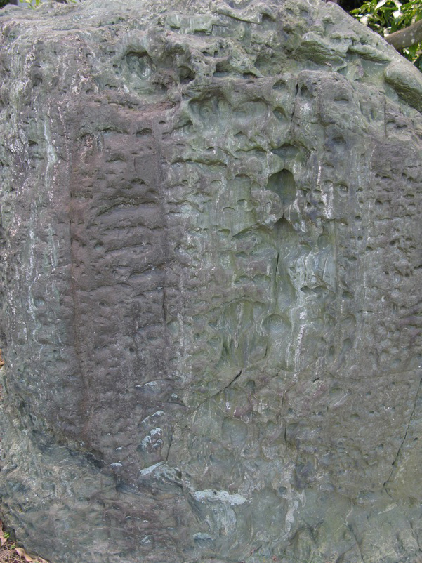 【83】古代文字が書かれているような石。でも、もしかしたら「ような」ではないかもしれない。何年も何年もむかーし昔に、誰かが何かを伝えようとした跡かもしれない。石にも記憶があって、歴史がある。人間のようにおしゃべりではないけれど。