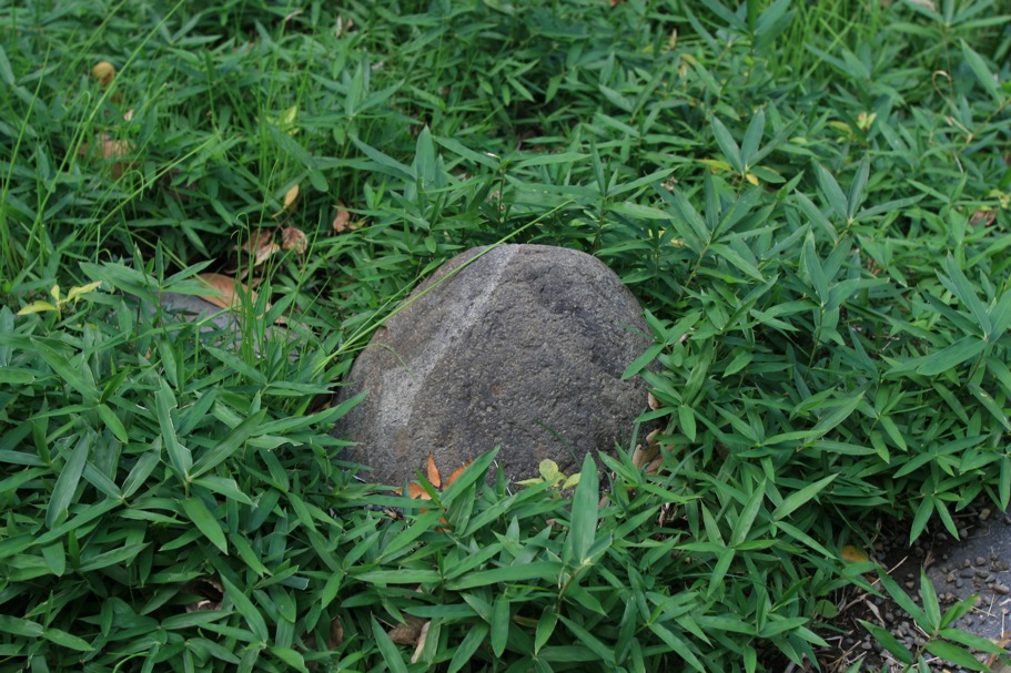 【24】足で蹴飛ばしたら、簡単にごろっと転がっていってしまいそうな、なんだか頼りない石。それでも綺麗に整列して、妙な魅力を放っている。だから、誰にも蹴飛ばされずにここにいて、歩道との境目を守っているのか。なんだか頼りないなんて言ってごめんなさい。