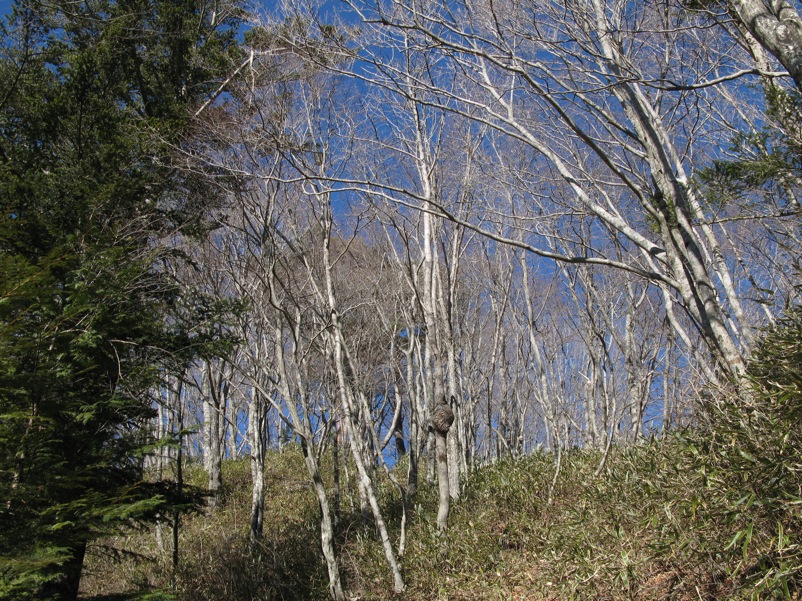 アンテナが立っているところが大平山(1,296m)です。冷たい北風が吹き抜けてさえいなければ、できるだけゆったりと休みたい場所です。