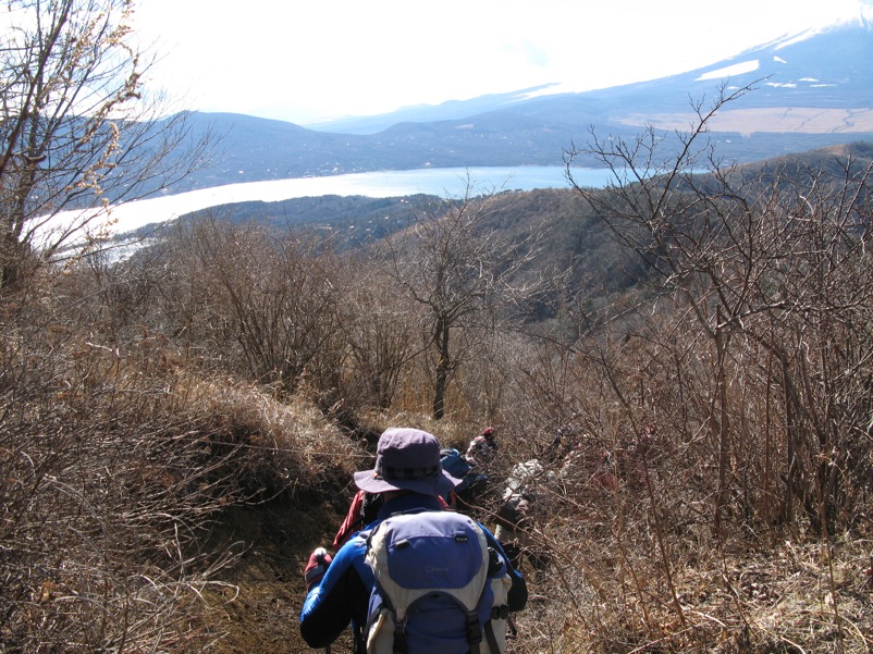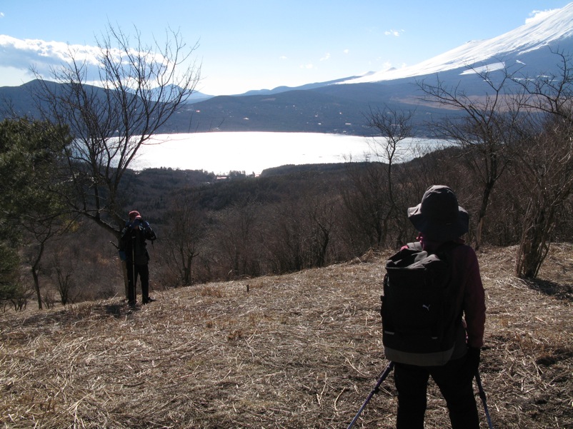 尾根の末端にはホテルマウント富士がありますが、その周囲に伸び上がってくる別荘地に出ました。舗装路を下ると山中湖畔です。