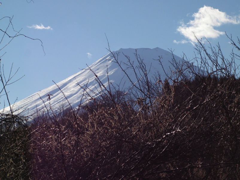 もうすぐ昼だというのに、富士山はまだおおかた見えています。見えているけれど、山頂部に雲がかかり、西側からしだいに雲が近づいてくる気配も感じられます。せめて石割山の山頂までは、なんとか富士山の展望を期待したいと祈る気持ちで、見えるごとに富士山を撮っていました。