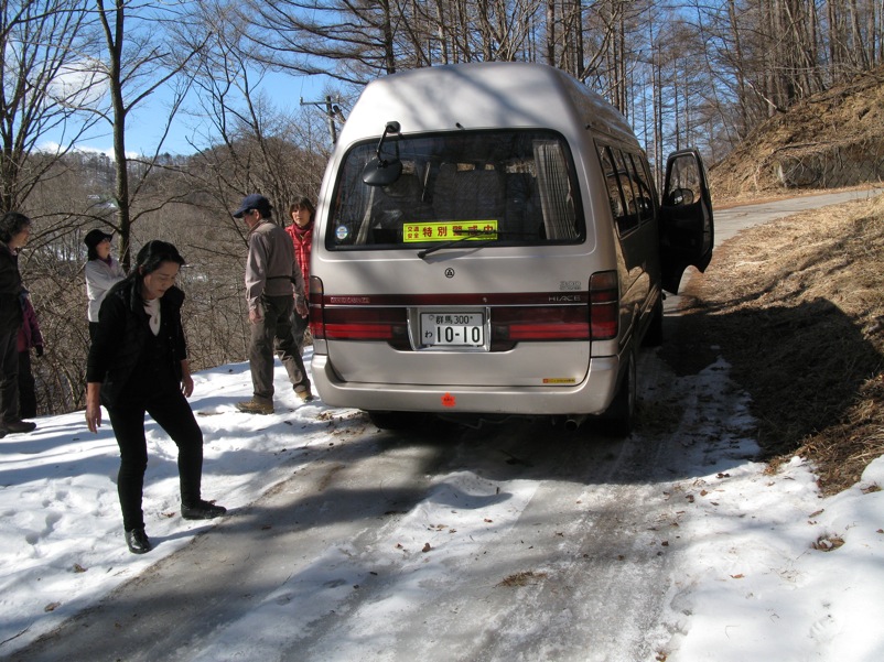私たちの乗った2台のジャンボタクシーの1台が、荒船不動の手前2kmほどのところで動けなくなりました。最終的にもう1台に引き上げてもらいましたが、それで約1時間の遅れ。下山時の融通幅を確保するためにタクシーを往復で確保したので、私はここではぜんぜん慌てていません。
