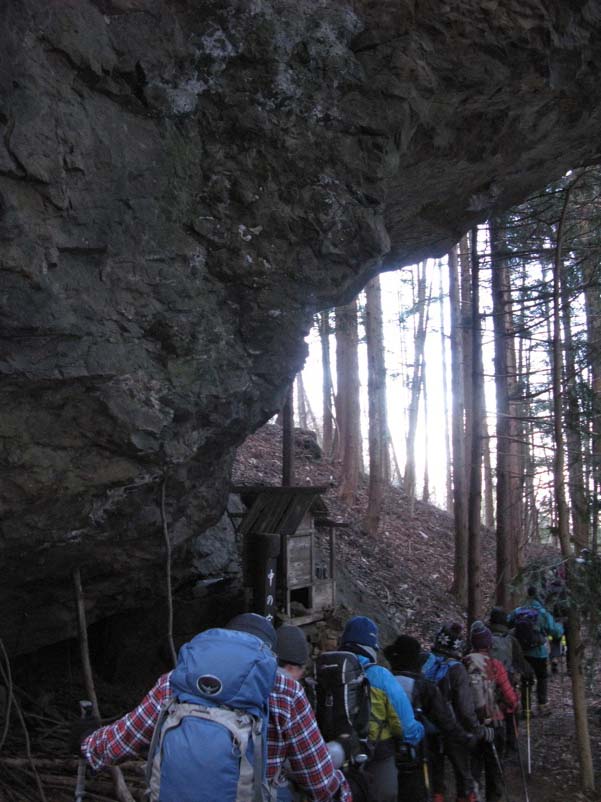 巨大な岩屋根の下にある中の宮。下仁田町のホームページには「中の宮の下付近で迷いやすくなっています」とありましたが、雪がなければほとんど問題ないと感じました。