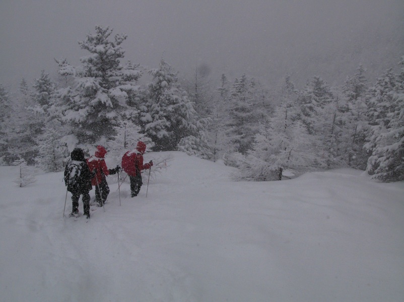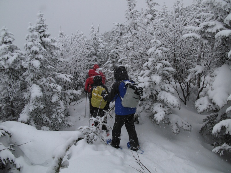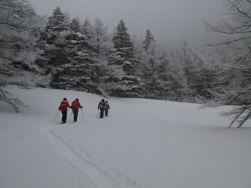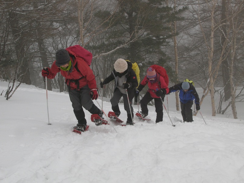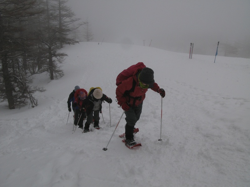 最初は歩くスキーで池ノ平往復がメーンでしたが、最近ではスノーシューで高峰山往復+水ノ塔山→籠ノ登山周回という計画が中心になりました。