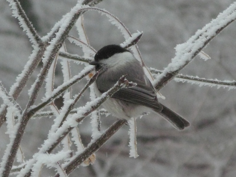 これはシジュウカラではなくてコガラだと思います。【25】の写真に写っているのと同じ鳥だと思います。そういう意味では【26】の写真と合わせて、三浦さんがスマートフォンで撮った【25】の写真にある2羽を私のキヤノン・パワーショットG7の最長望遠領域で撮ったものということになります。