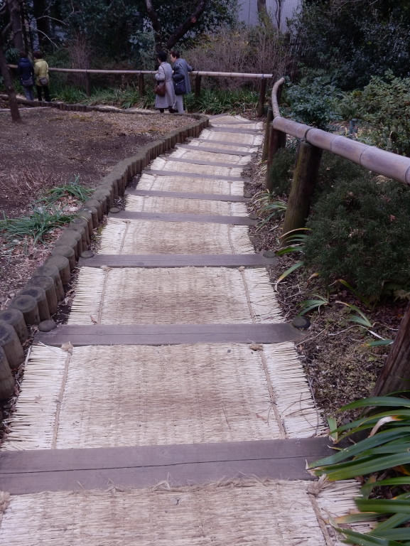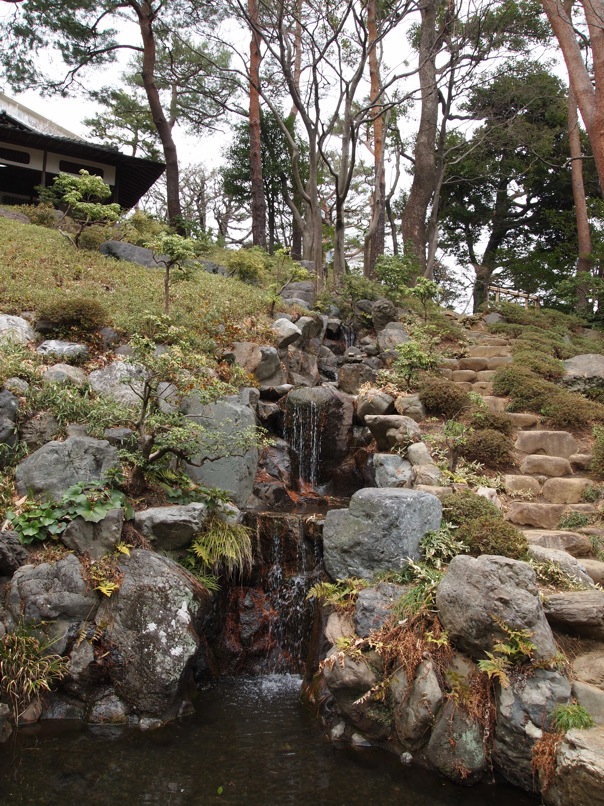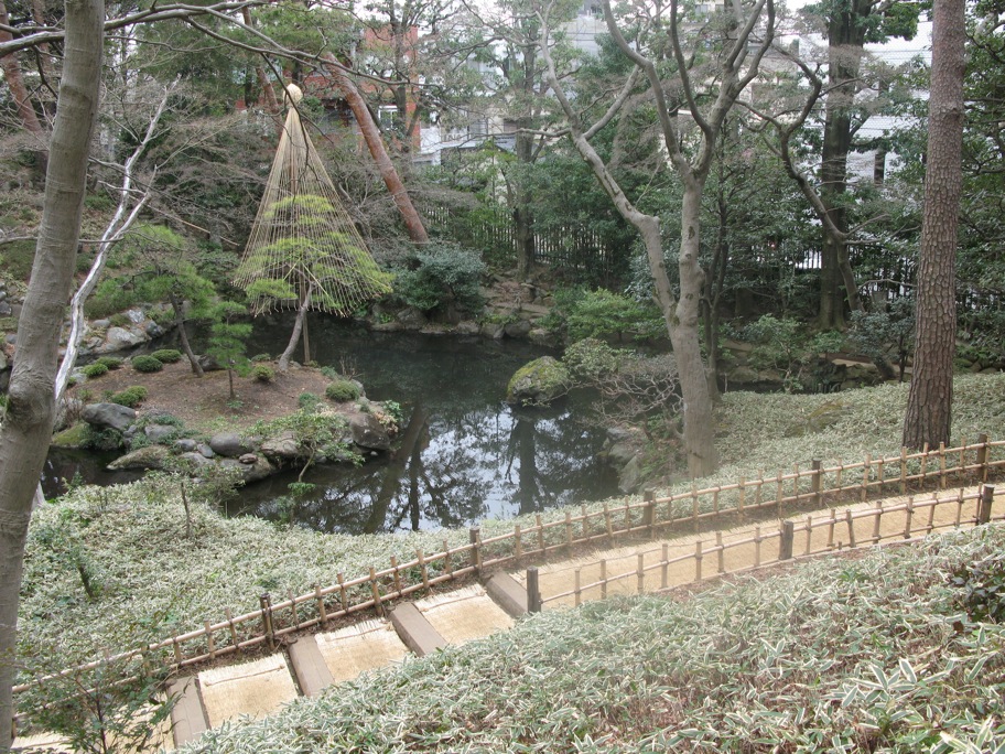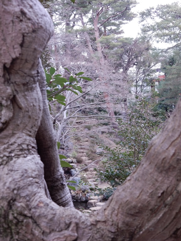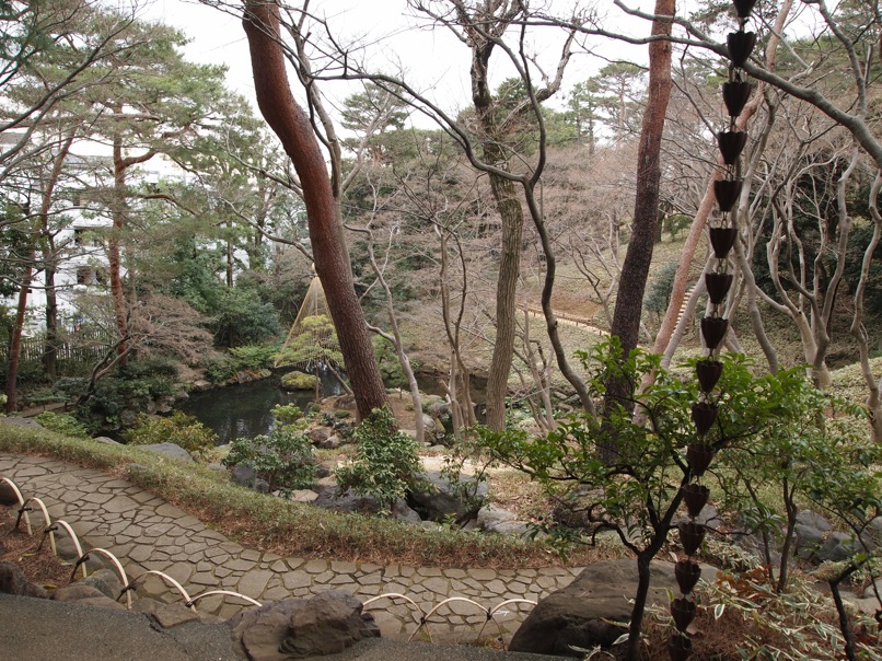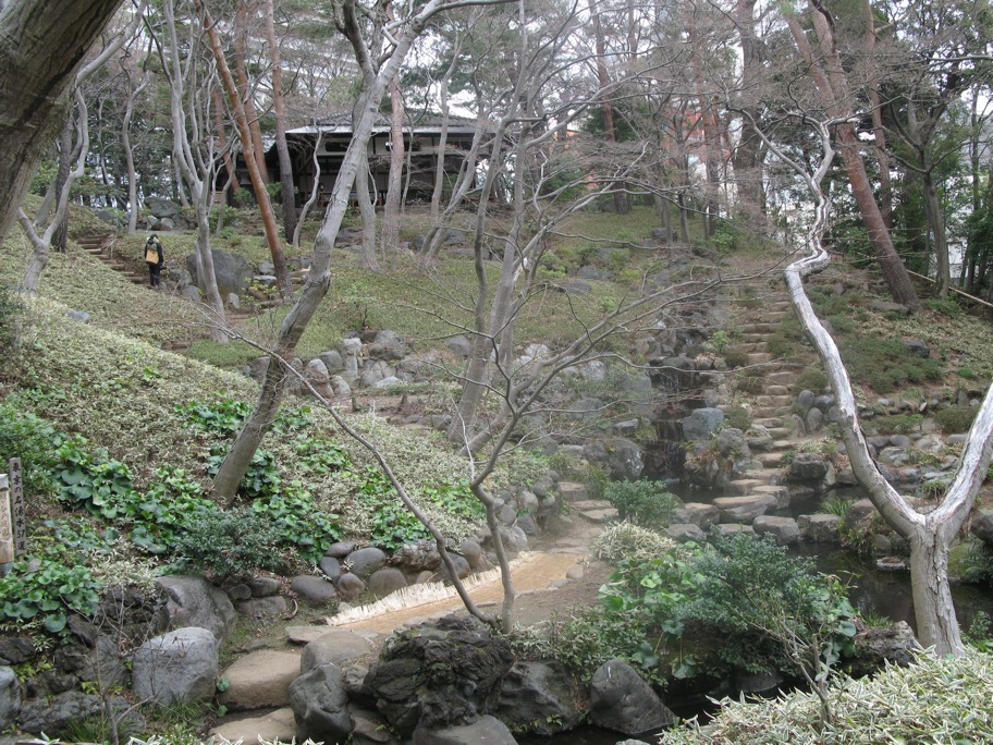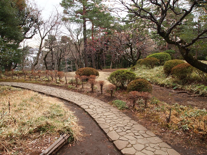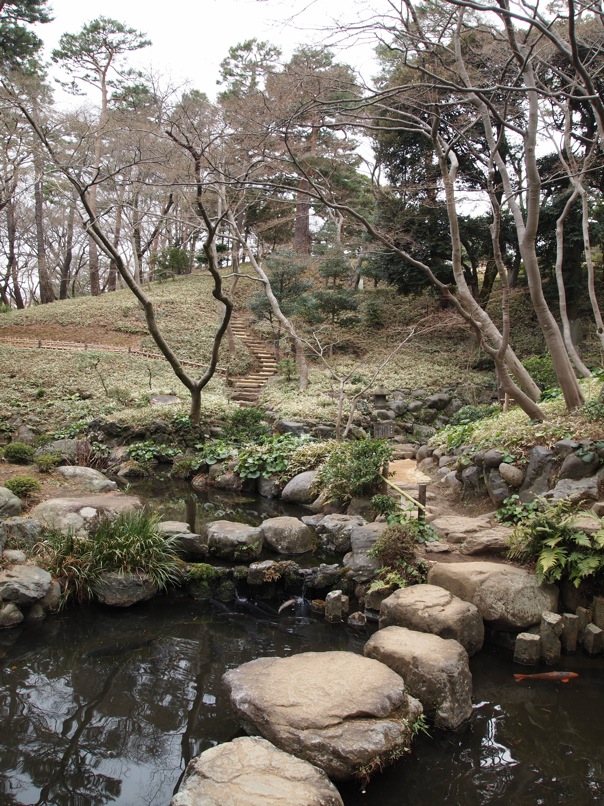 ところが歩き始めてみると1時間はあっというまに過ぎて、2時間びっしりと園内を歩いていたのです。なぜか? 武蔵野台地の段丘崖に位置する高低差の大きな庭園ゆえに、見える風景がドラマチックに展開します。花のないこの時期でさえそうですから「紅葉亭」と名づけられた茶室のあるこの庭の秋景色はどれほどのものでしょうか。そういう想像をしながら歩き回っていたのです。
