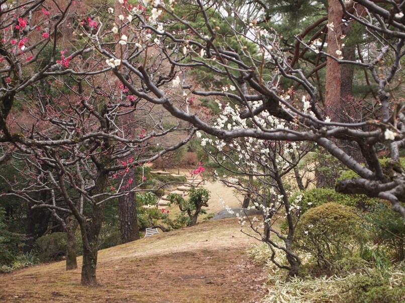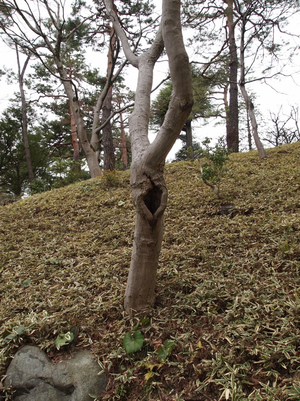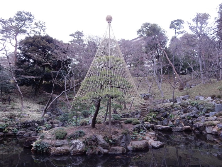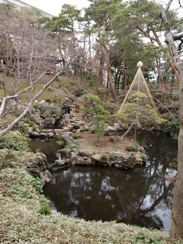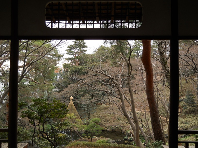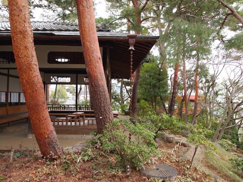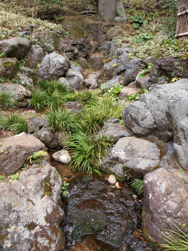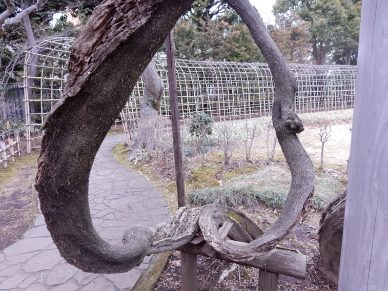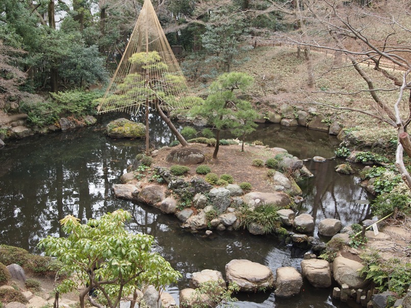 ところが歩き始めてみると1時間はあっというまに過ぎて、2時間びっしりと園内を歩いていたのです。なぜか? 武蔵野台地の段丘崖に位置する高低差の大きな庭園ゆえに、見える風景がドラマチックに展開します。花のないこの時期でさえそうですから「紅葉亭」と名づけられた茶室のあるこの庭の秋景色はどれほどのものでしょうか。そういう想像をしながら歩き回っていたのです。