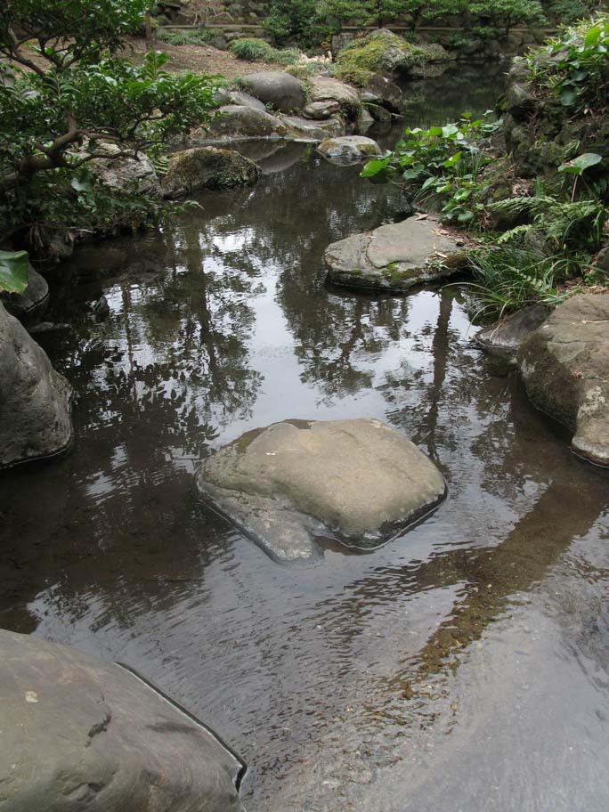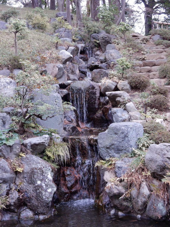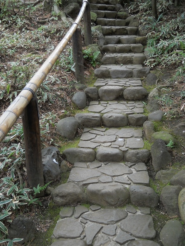 斜面に広がる庭園ゆえに、階段があちこちにあります。それがどこもていねいにつくられているのです。古くてありがたい感じのする日本庭園と比べるとなんとなく新しい雰囲気があります。この庭園は岩崎財閥のものでしたが、最終的には周辺住民の保存運動によって都の庭園として残されたといいますから、案外新しい手入れによってここにこうしてある……という雰囲気を感じます。勝手な印象にすぎませんが。