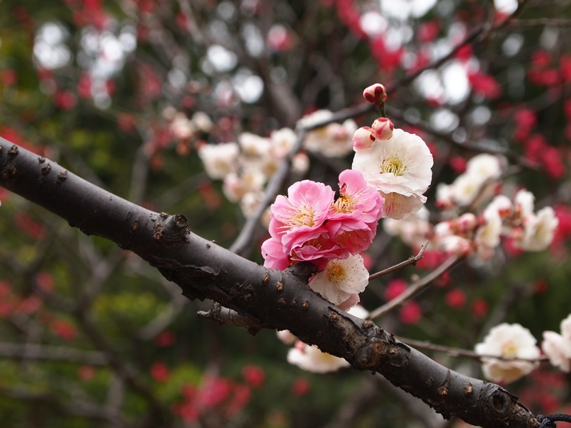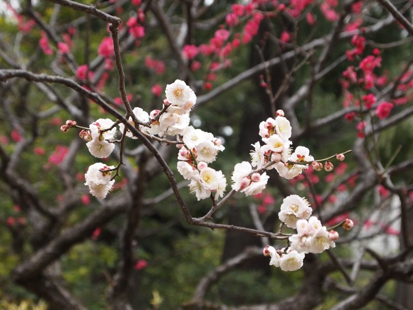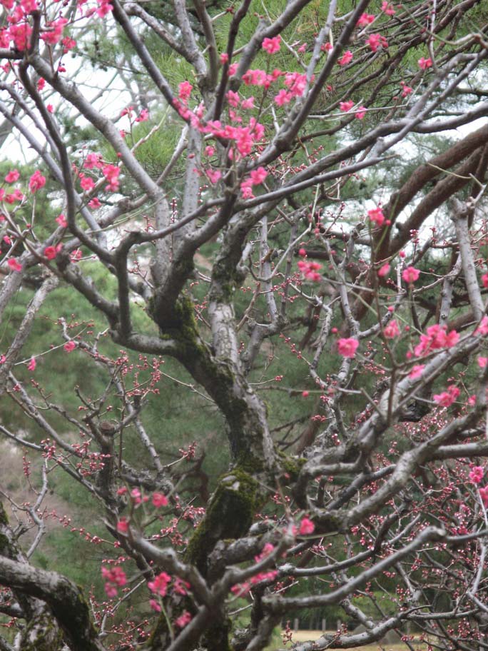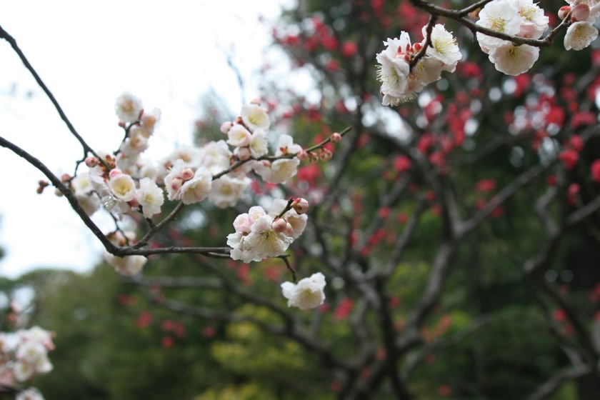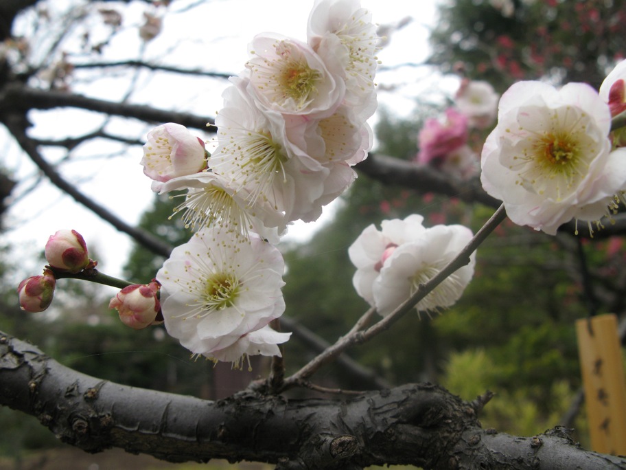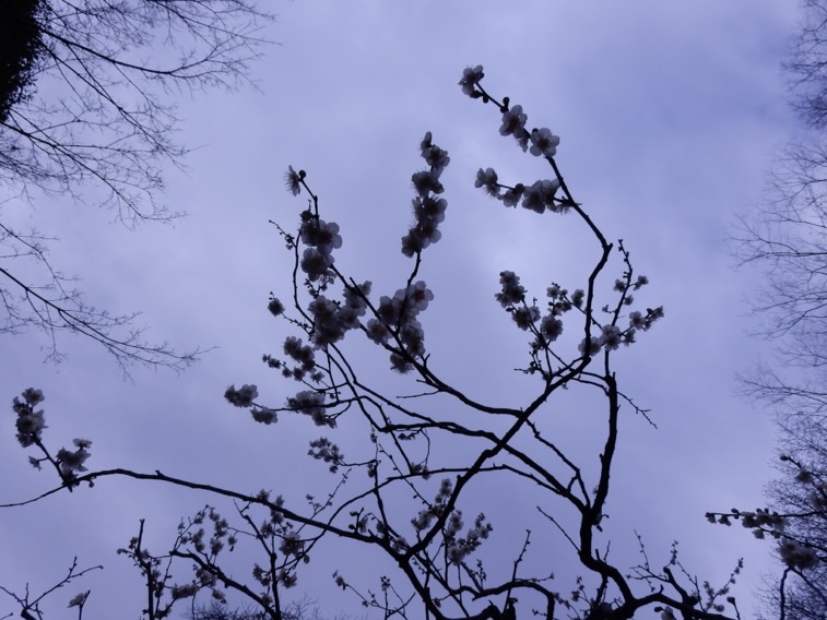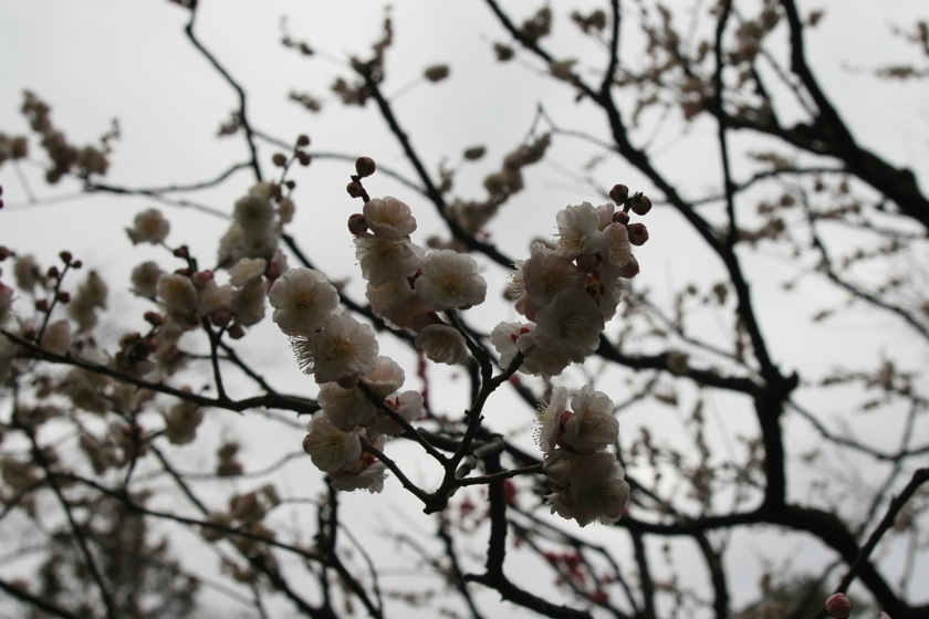 【06】梅のむこうの空は生憎くもり空。でもちょっと不思議な色で撮れていました。