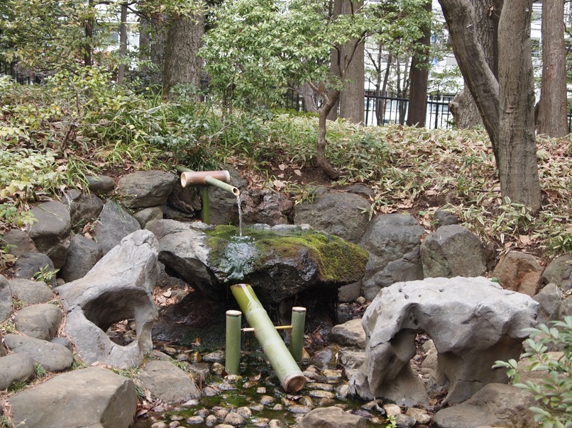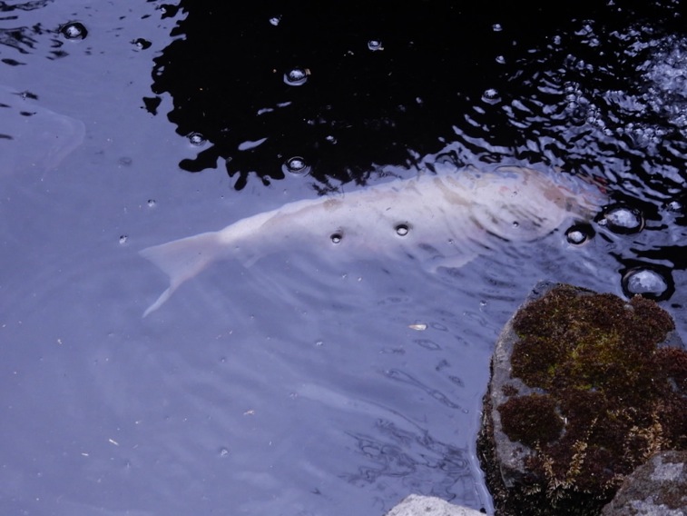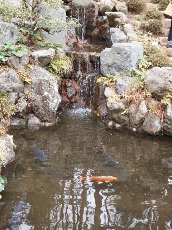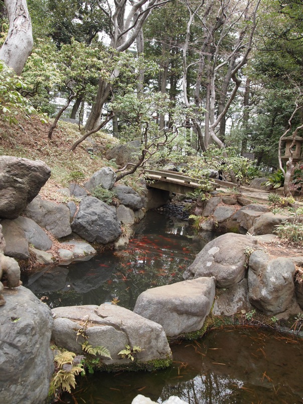 池には鯉がすいぶんたくさんいて、もちろんエサを求めて泳いでいるという感じではありましたが、あまりガツガツした感じはありませんでした。この発見写真旅のシリーズでは小石川後楽園や清澄庭園など、鯉のエサを売っているところがやはり激しい生存競争というふうに見えました。