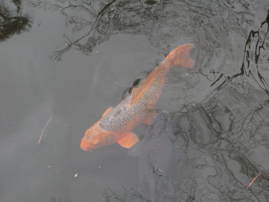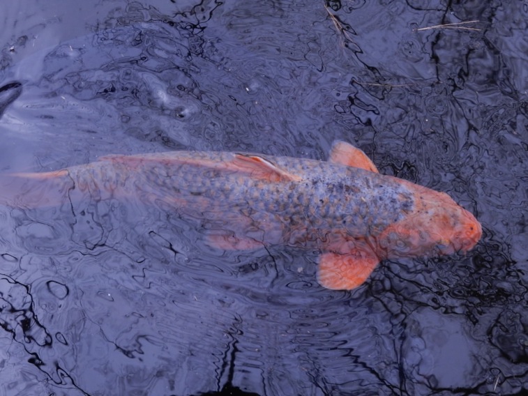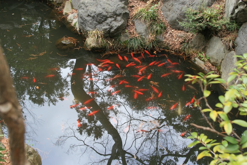 「庭園に鯉」はよく見るけれど、ここにいたのは金魚。