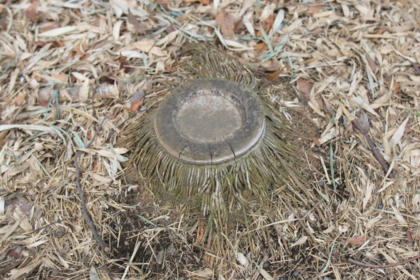 要所要所にはこのような筵(むしろ)が敷かれていました。よく見るときちんとつくられた長尺のむしろを二本のロープでスマートに固定しています。関東ローム層で起こりやすい霜柱に対して、断熱材として藁を敷き詰めるのが伝統的な方法だといわれますから、これだけの予算と手間をかけるのは、たぶん、それだと思います。
