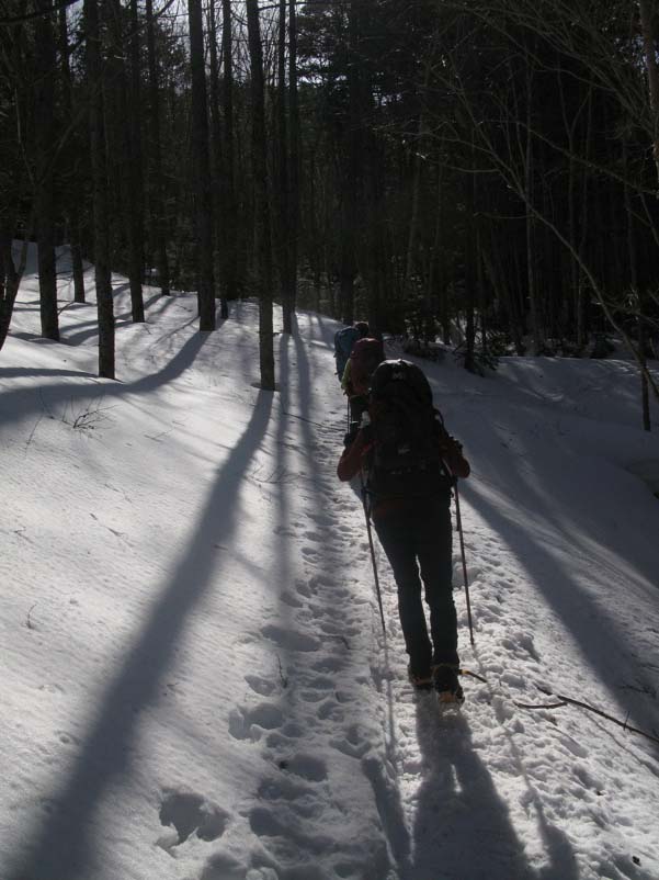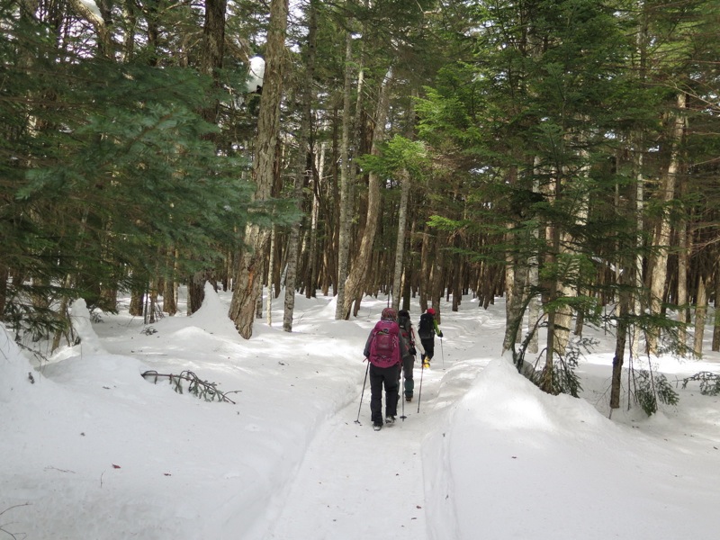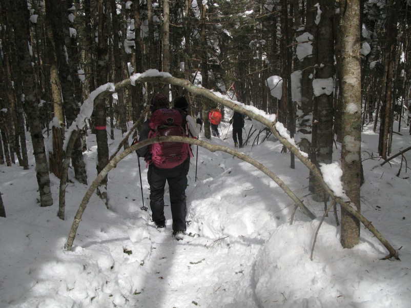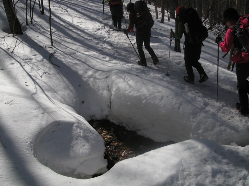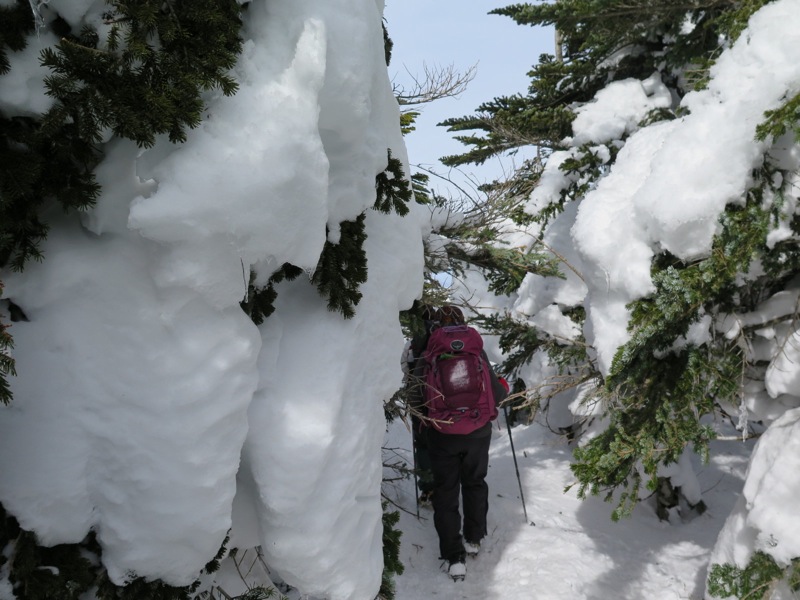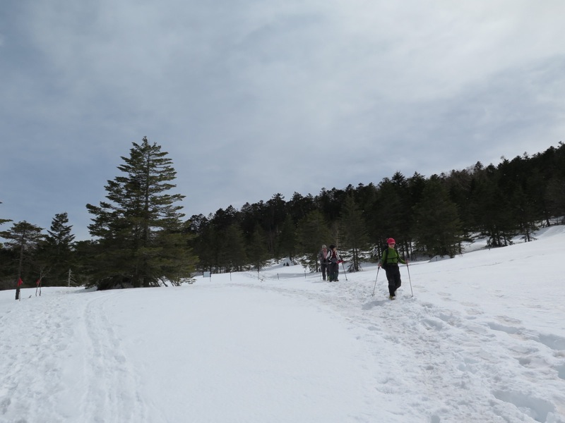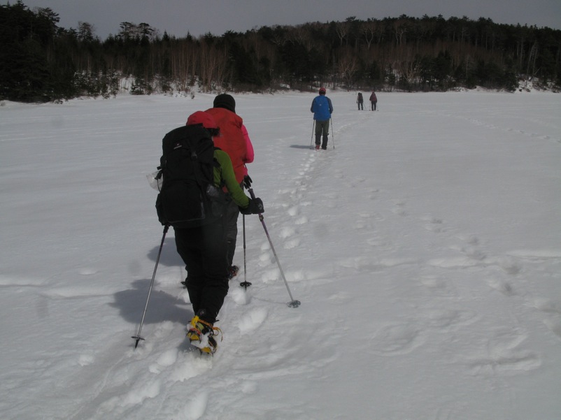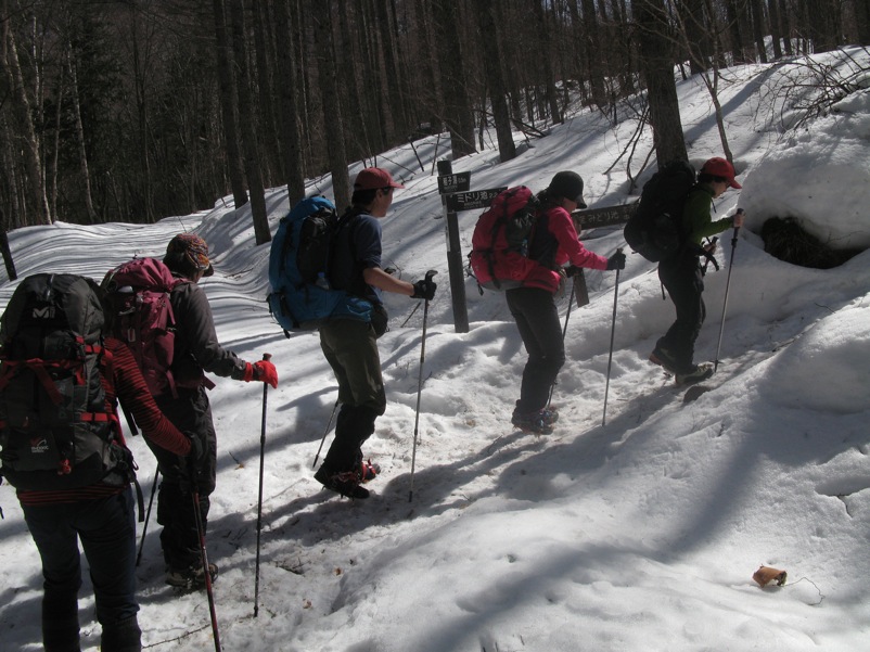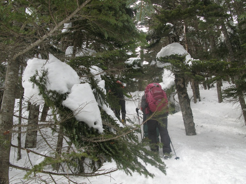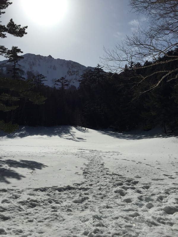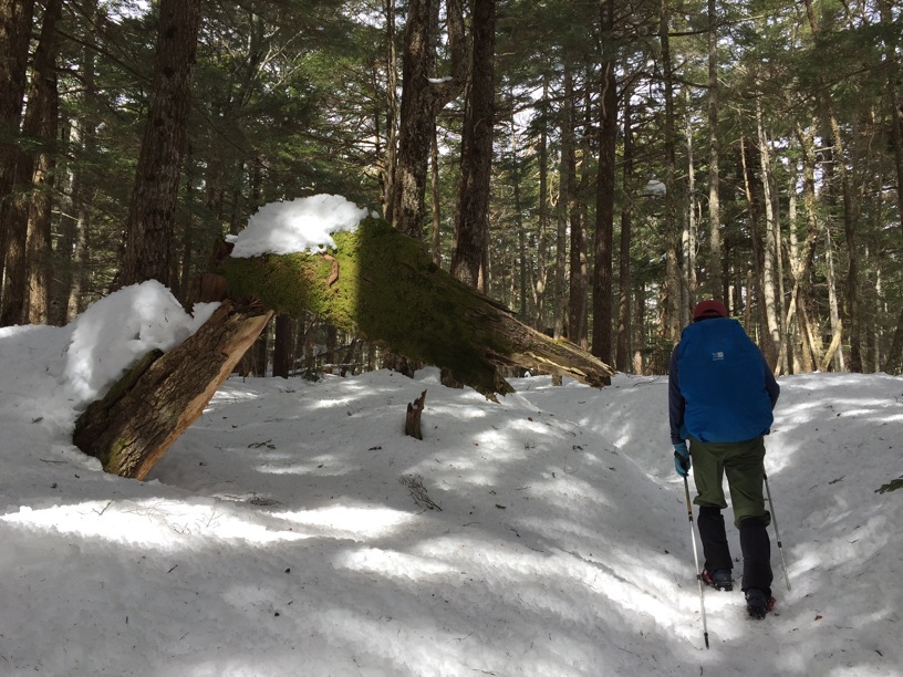 つまり、先に歩いた登山者によって道が拓かれるので、よほどの大雪の直後でない限り新雪をラッセルして前進するというようなことは縦走路では考えにくいのです。もしトレースがなければ「無条件に引き返す」という大原則を掲げておけば時間の計算も無雪期と同じ、歩きやすさは無雪期以上というふうに考えておいていいのです。