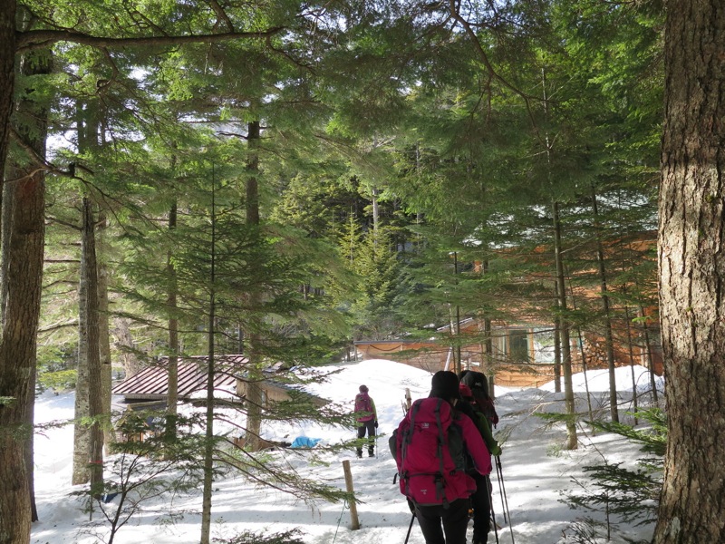 つまり、雪の山で、雪崩と滑落の危険がない領域に限定して、4本爪の軽アイゼンとダブルストックで歩くと考えるとき、冬期も山小屋がたくさん利用できる北八ヶ岳はパラダイスなのです。
