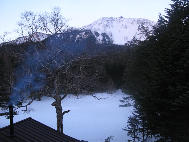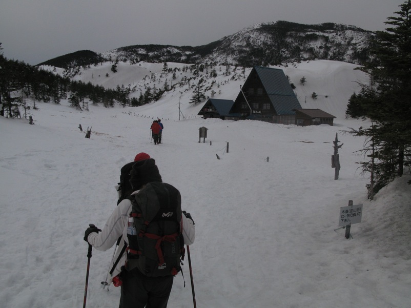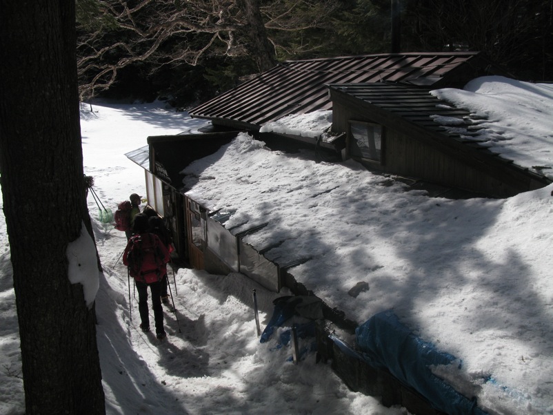 しらびそ小屋に泊まると、やっかいな状況が発生していました。中山峠への最後の登りが大雪で軽アイゼンでは登れない……というのです。
