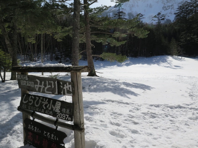 登山道はよほどの大雪の直後はともかくとして、トレースがなくなることはほとんどありません。八ヶ岳は雪国の山ではないからでもありますが、北八ヶ岳では山小屋の努力によって冬でも登山者が多いのです。