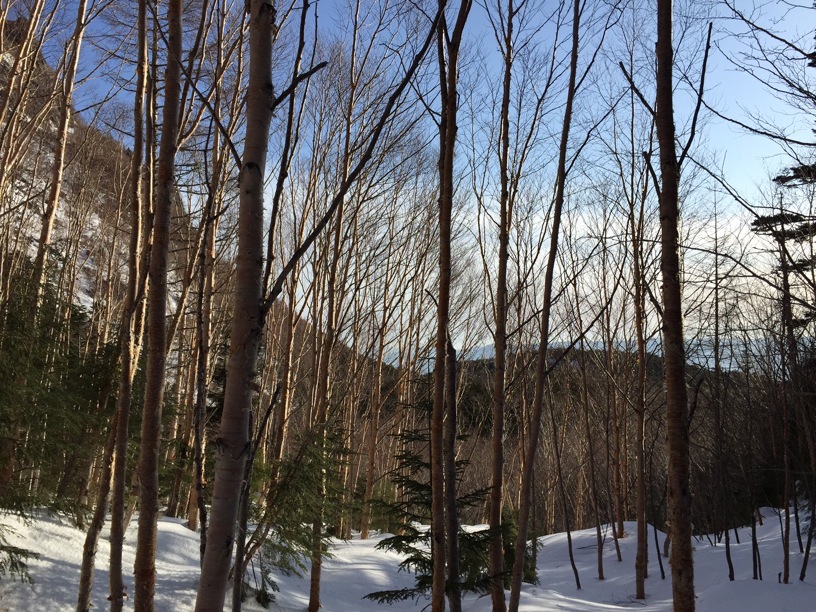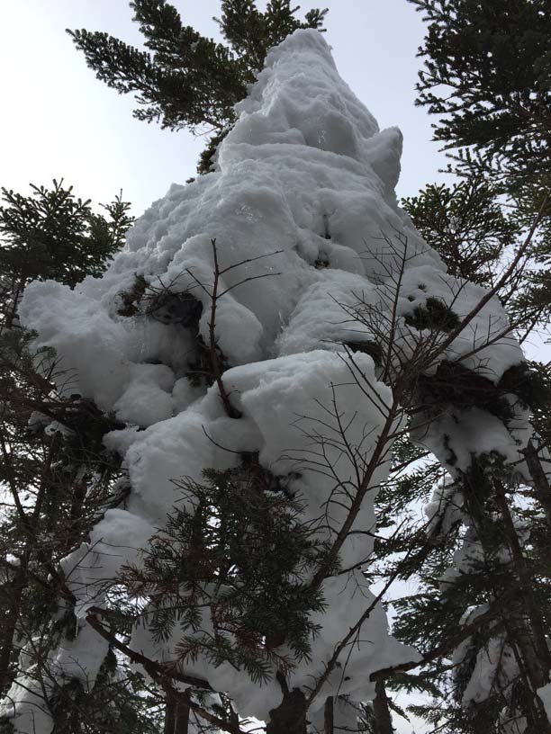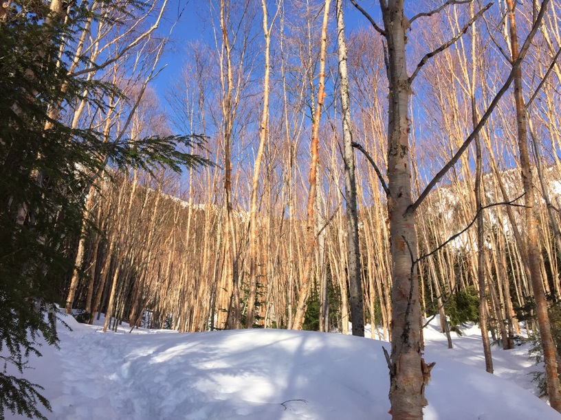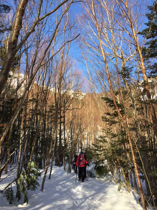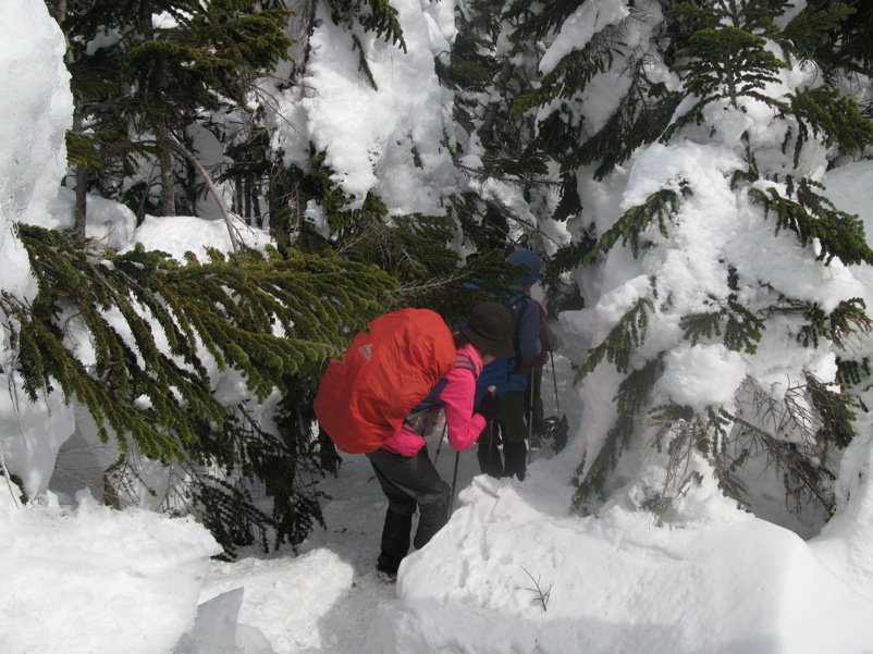 私たちはこの領域で、一時期はテレマークスキーで新雪の森を歩きました。スノーシューを借りてもうすこし冒険的な雪遊びもしました。しかしやはり、軽アイゼンによる縦走がこの稜線には合っていると思います。
