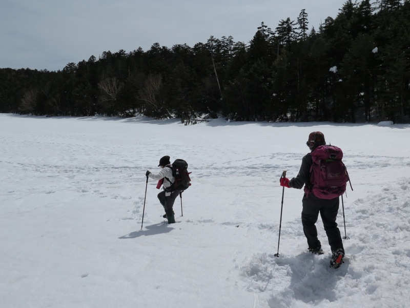 軽アイゼンでは登れないかも、と聞いて、私はもちろん、悩みました。明日は戻って、転戦しなければならないかもしれません。本沢温泉まで行ってみるという程度の策しかありませんでしたが。