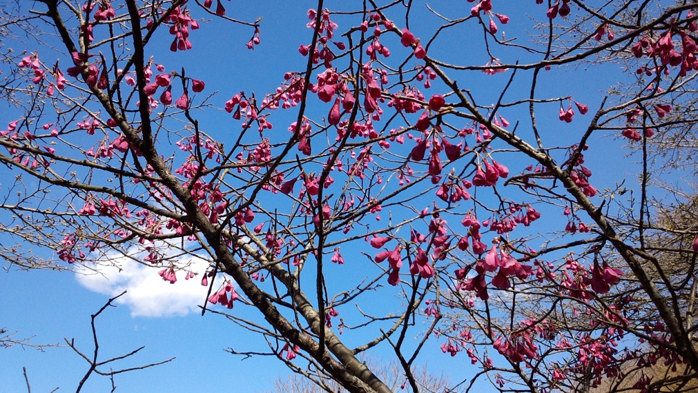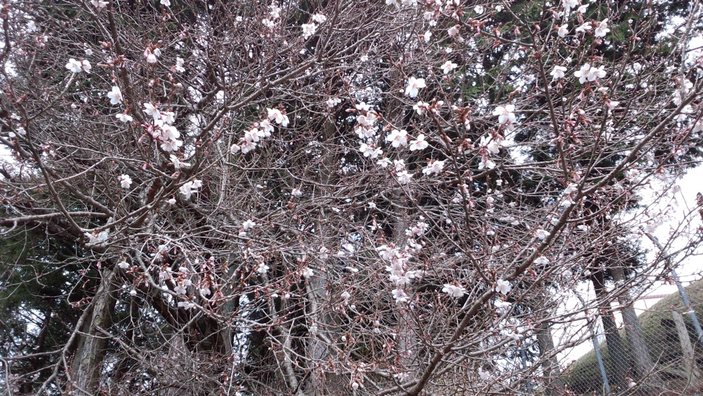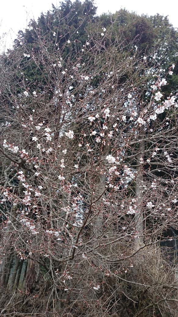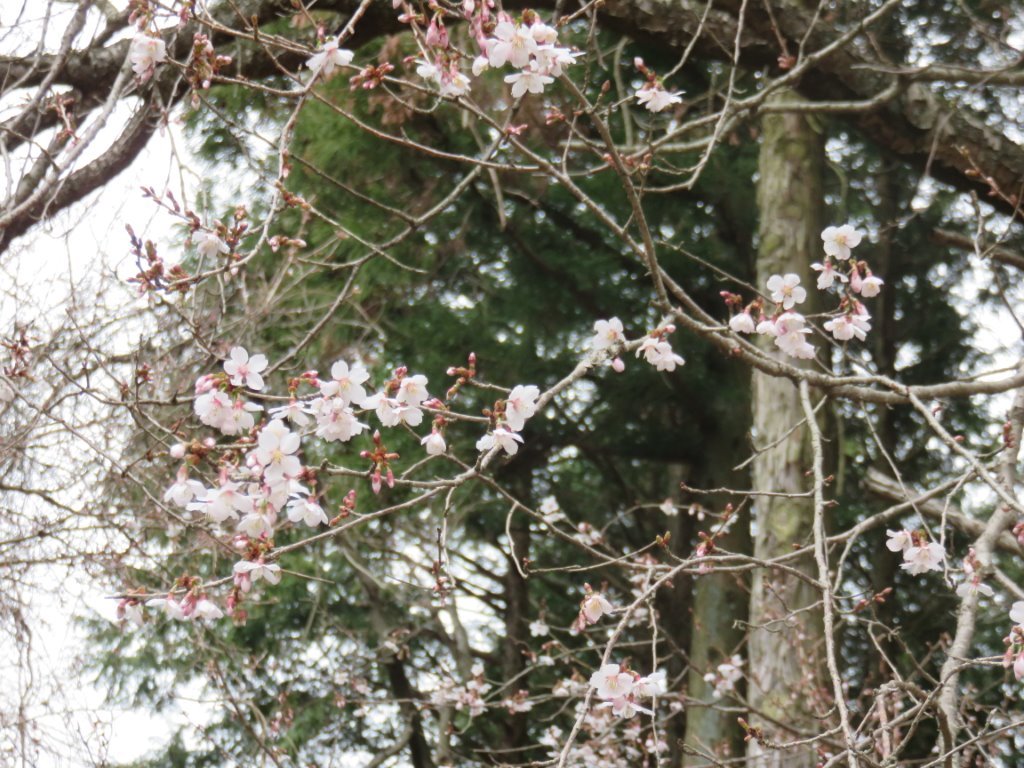 所々 早めに可憐な桜が咲いて 私たちを出迎えてくれた。品の良いピンク色で貴重な一本だった。