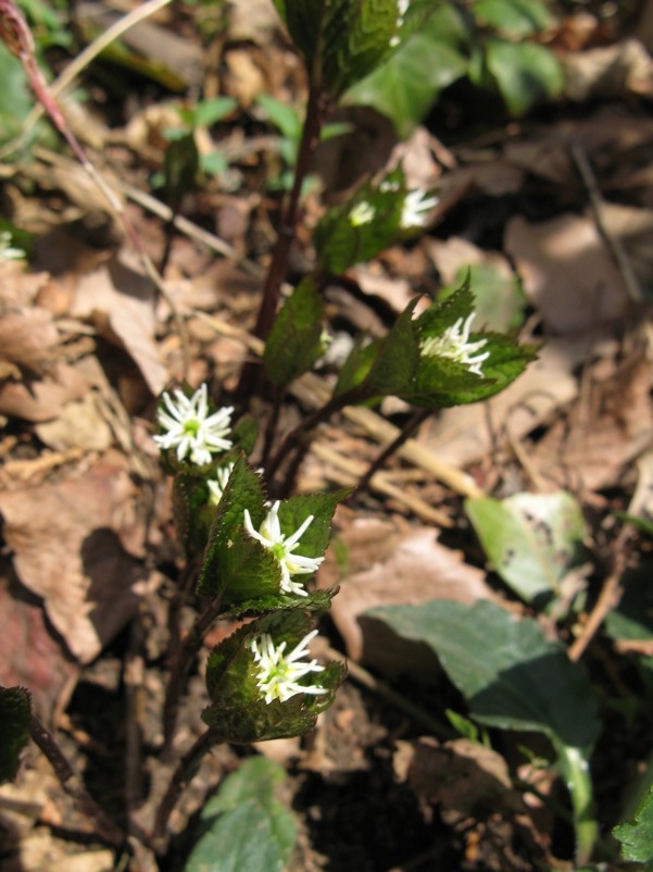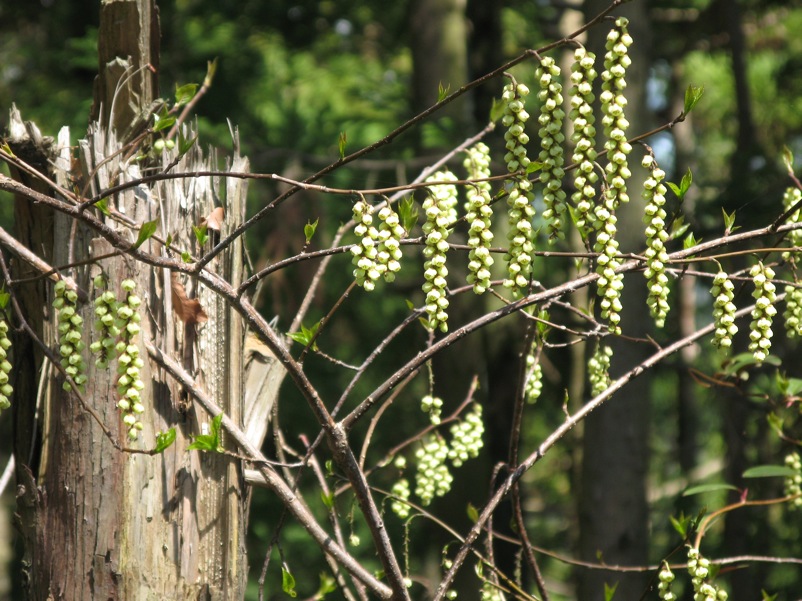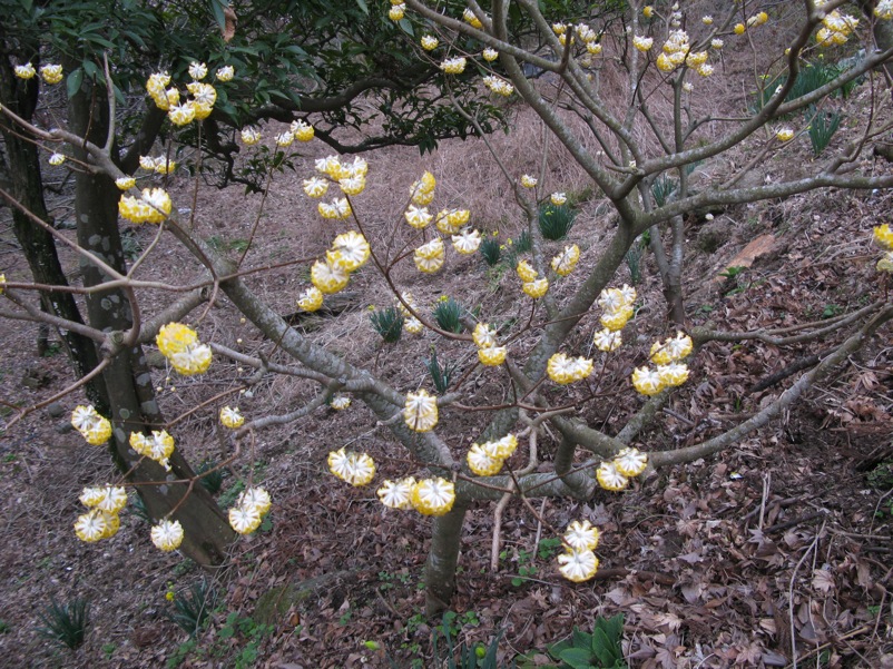 ケーブルカーを降りたところは、以前は追分駅だったと思いますが現在は「大山ケーブル駅」。「山麓駅」でもいいようですが、駅を出たところにこのミツマタがありました。