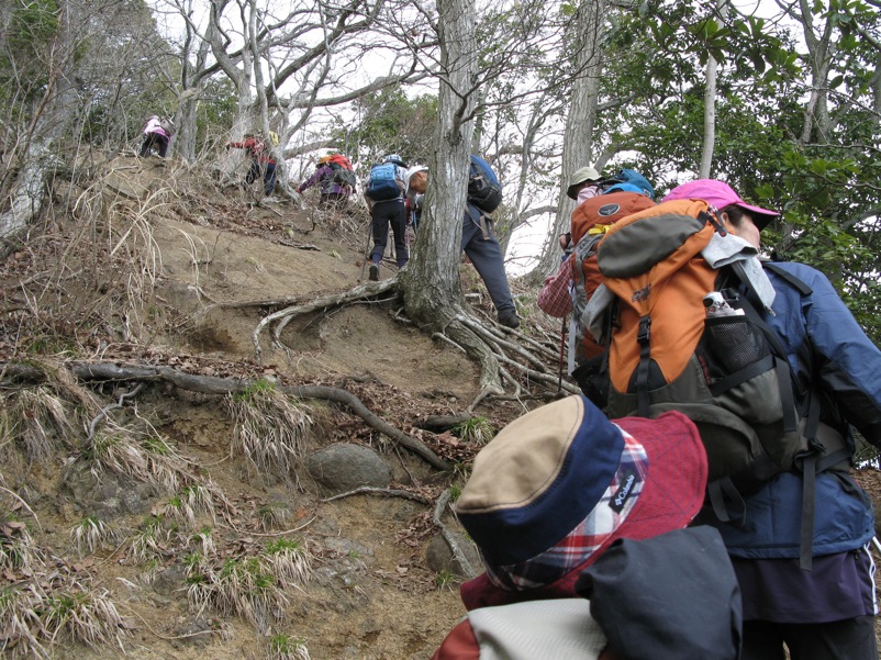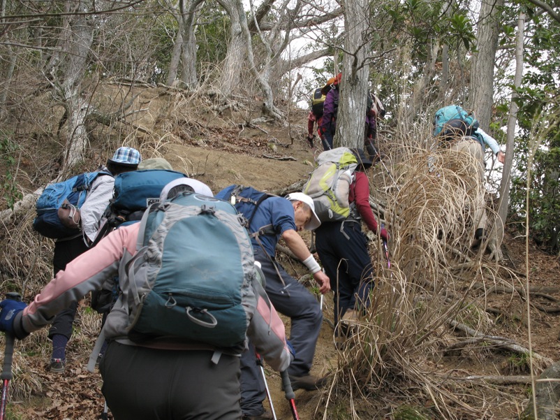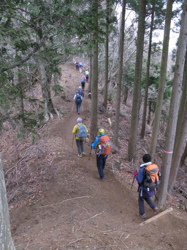 当初は単純な花見登山でした。東京より一歩早い花見ができる(のではないだろうか)というのが早トチリであったようで、わざわざここにあった伊豆ヶ岳を変更したにもかかわらず、どうもこの日程設定はマズいと感じ始めました。加えて花見エリアでは直火禁止ということがわかり、久しぶりの宴会登山も不可能に。おまけに陣屋の日帰り入浴も満員とか。
