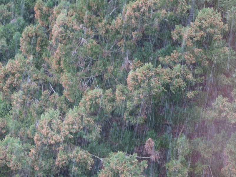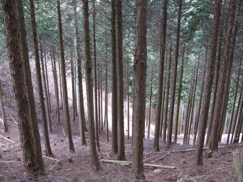 突如現れるこういう林道は、じつは日本中の山に張り巡らされた建設道路。マイクロウェーブ回線やテレビ電波の中継をするパラボラアンテナを建てるために、林道が開かれたのです。発電用燃料などを補給する必要がある場合には林道は車が通れるように整備されていますが、多くは放置されています。いまは林道を造るよりヘリで運んだ方が安くつく場合が多いともいわれますが。