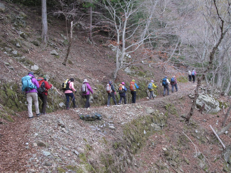 小さな沢を渡るだけなのに、こんな荒々しい光景も目にします。首都圏の日帰りの山では、このような荒々しい光景はずいぶん見慣れたものになっています。
