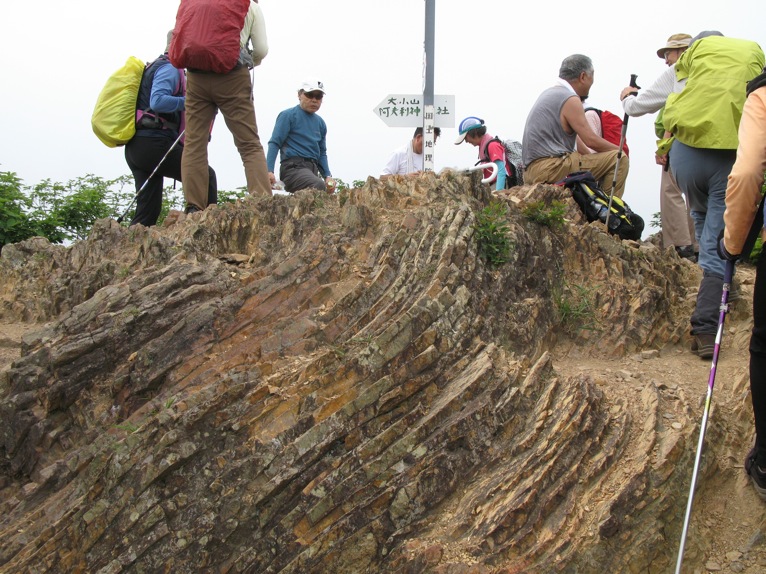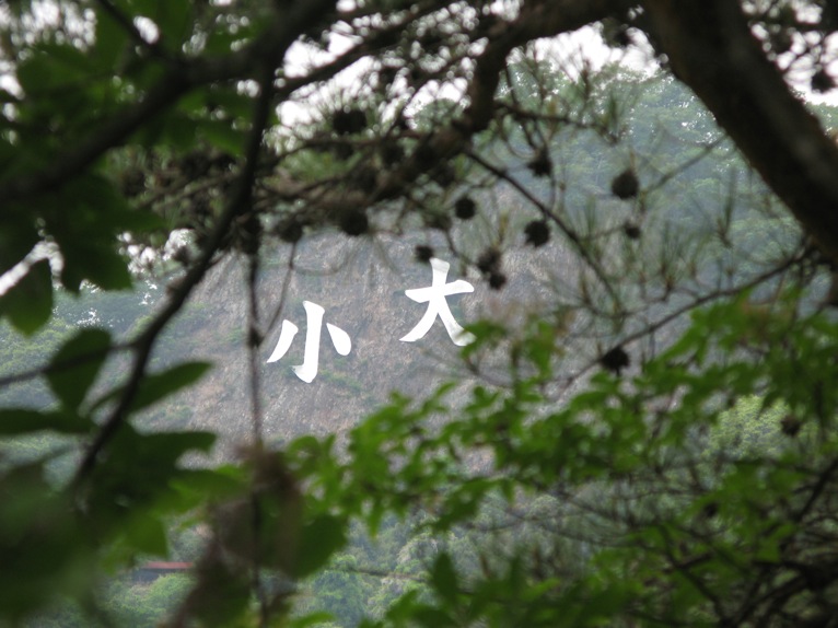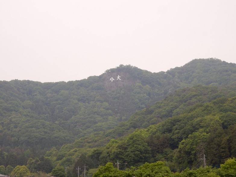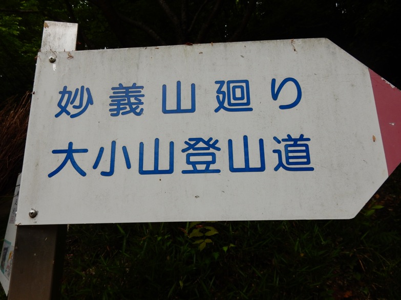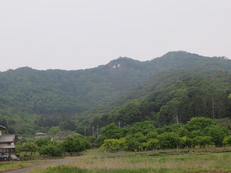 前方にこれから登る大小山の目標物大小の文字がみえます。