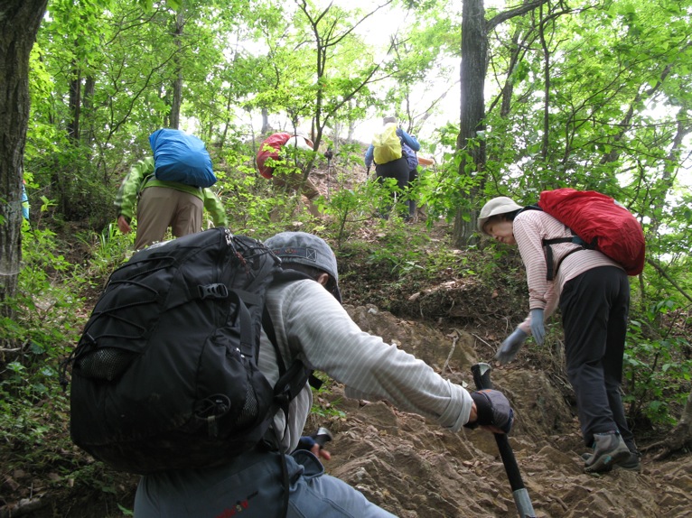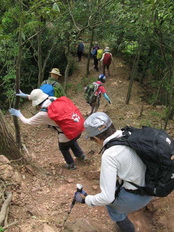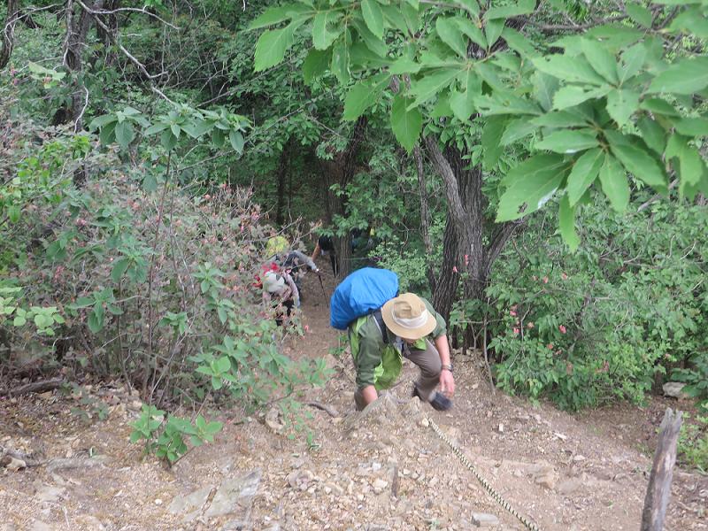 登山道はのっけから急登です。規模が小さいので先行きの心配はありませんが、刺激的な登りです。