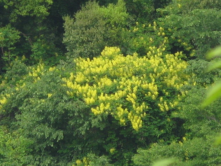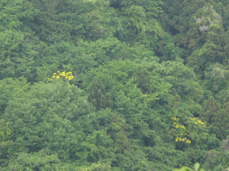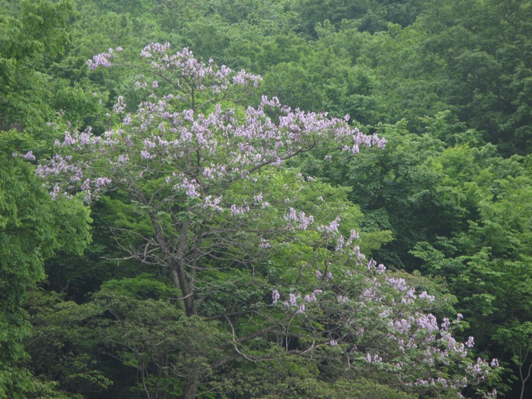 帰りのことを考えて16時30分に正面ゲートで集合と決めました。10分ほど前に外に出てみると、フラワーガーデンを取り囲む山の斜面に立派なキリの木があって、花が咲いていました。これだけのものなのに、背後の緑を全部背負って咲いているのが、やっぱりすばらしいと再確認しました。(このホームページに「5.足元の小さな花」という文章を載せました。トップページの「講座・自習登山のすすめ」から是非お読みください)