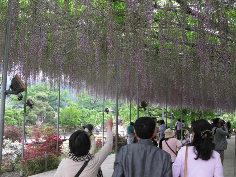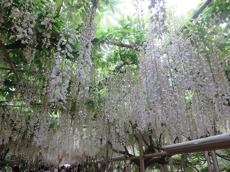 大藤の下が通路になっていました。さすがにここは記念写真の場所、見上げるニコニコ顔もたくさんありました。ちょっとした異空間です。