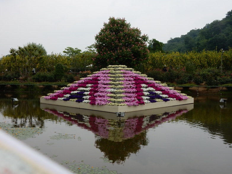 立体的な菱形の中に幾何学的に花を飾り、浮島みたく設えてます。同じものが3〜4ケ所ありました。