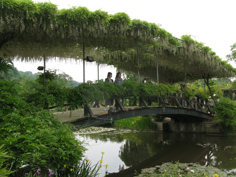 橋の名前は知りませんが、白いフジが天井をつくっています。夜になると幻想的な光景になりそうな場所です。