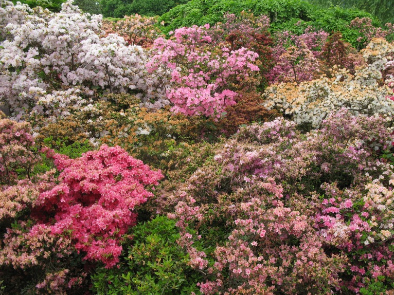 同じ種類のツツジなのでしょうか。色違いなのにこのツツジたちの雰囲気は同じです。このひと山、色見本を作ったという感じでしょうか。