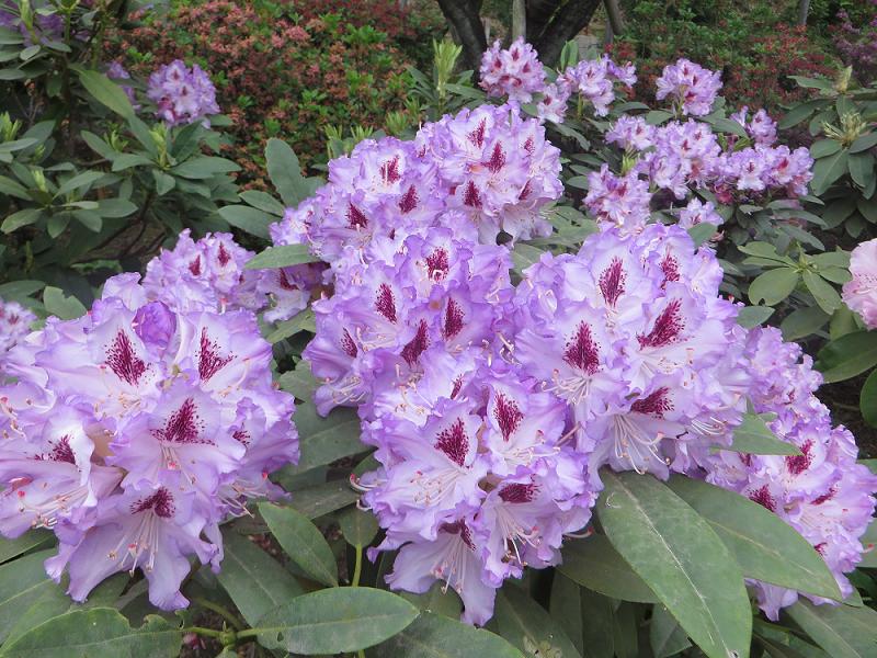 まだいくぶん咲き残っている花にセイヨウシャクナゲがありました。花は大きく、色鮮やかで、まあイブニングドレスを着た豊満なレディという感じ。ここに日本のシャクナゲを置いても、貧相でしょうね。
