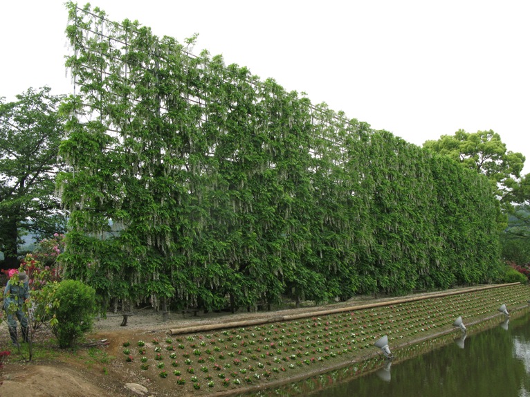 ひょっとして無くなってしまったのではないだろうかと不安になったのがこの緑の衝立です。2007年5月12日に初めて大小山に登ったとき、下山して富田美術館とあしかがフラワーパークを両方見学しました。そのときに藤棚ではなく藤壁を見たのです。