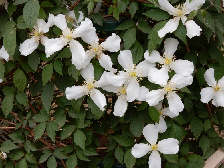 クレマチス。白いはなびらが重なりあい、賑わいを作っていました。